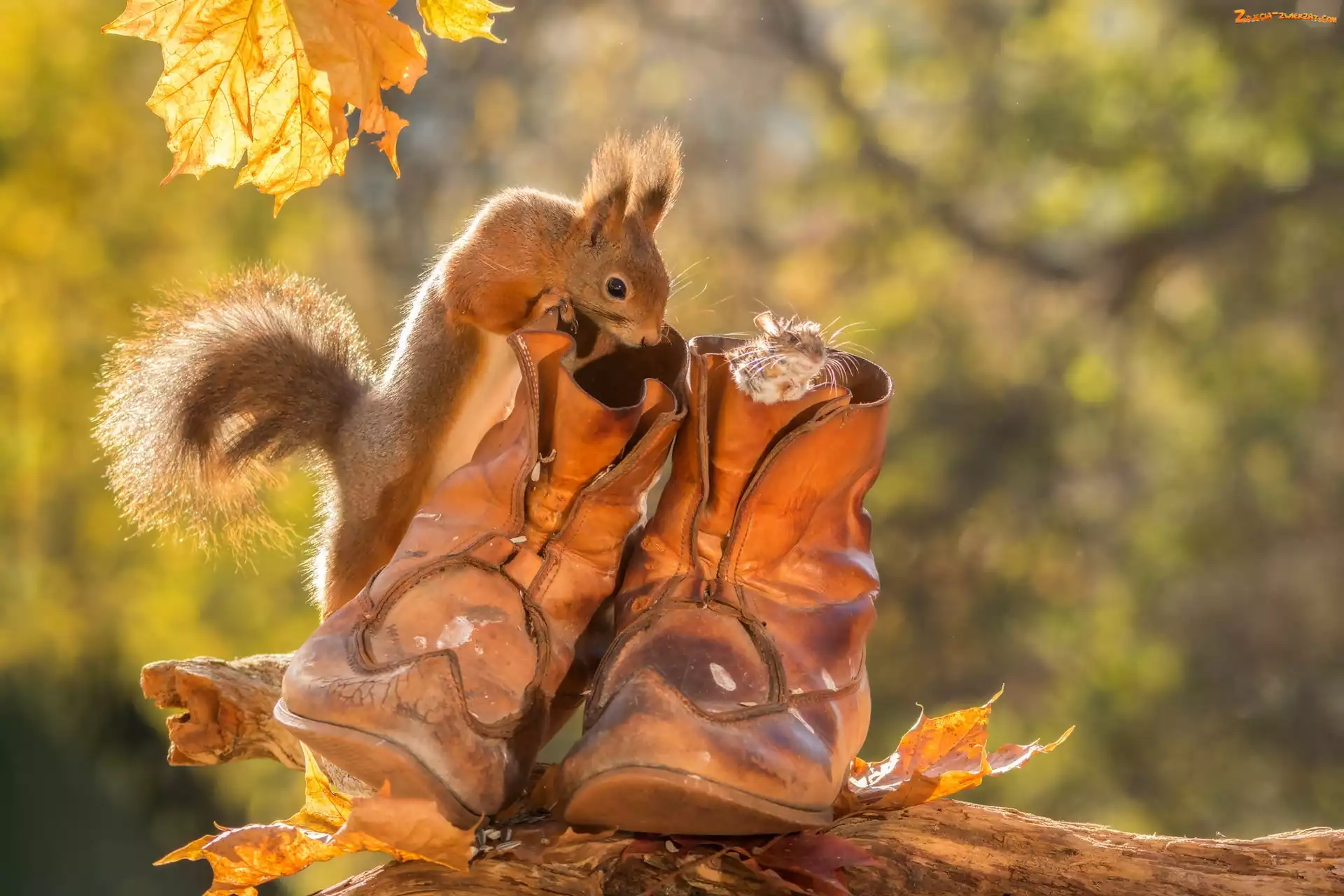 Zdjęcie: Myszka, Mała, Wiewiórka, Jesień, Buty