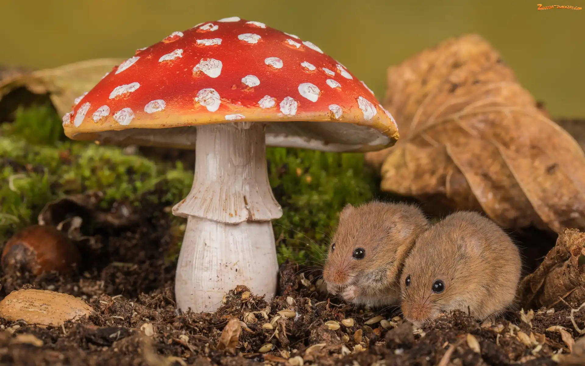 Myszki, Dwie, Muchomor, Grzyb, Gryzonie