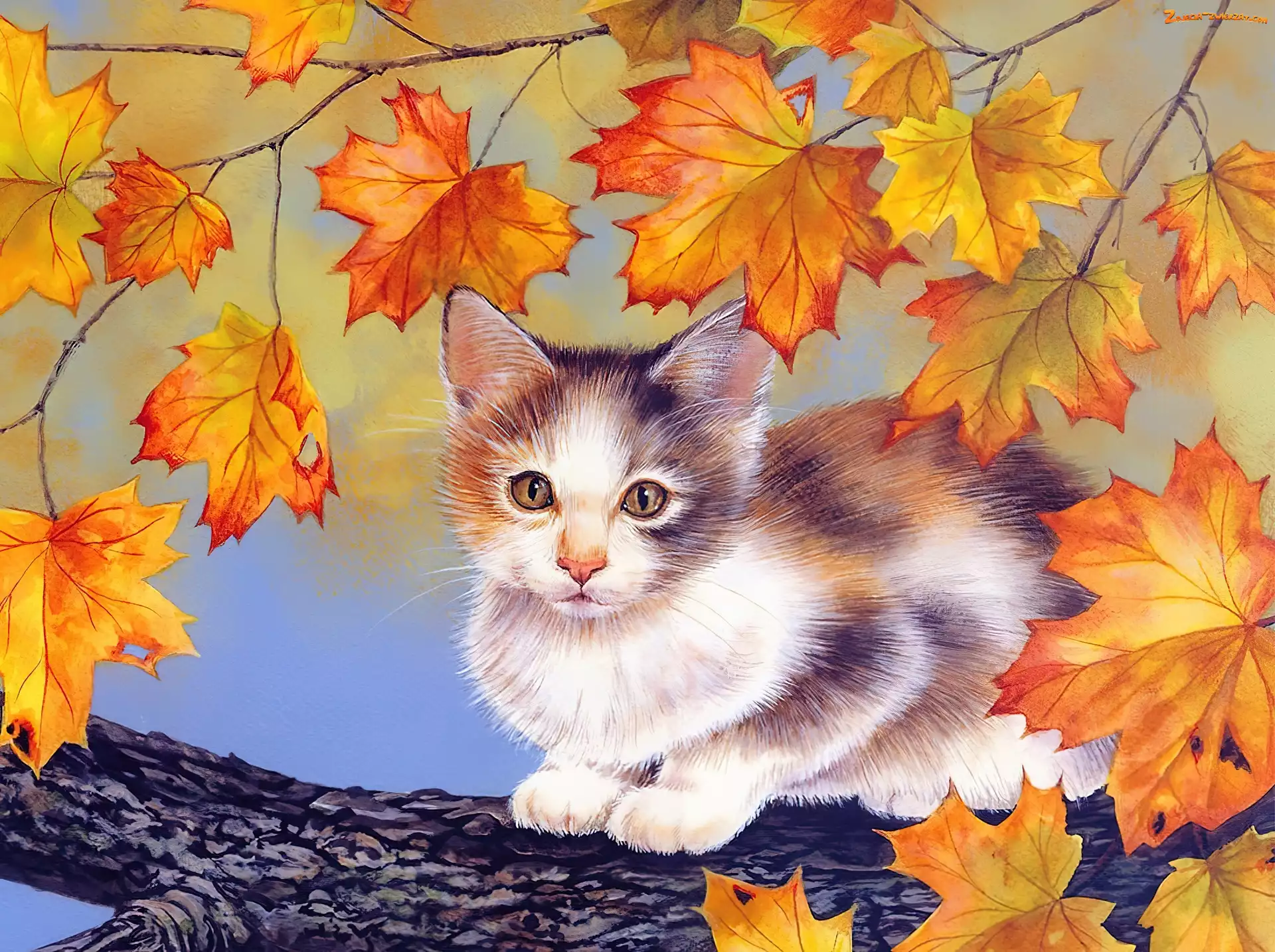 Zdjęcie: Na, Liście, Kot, Drzewie