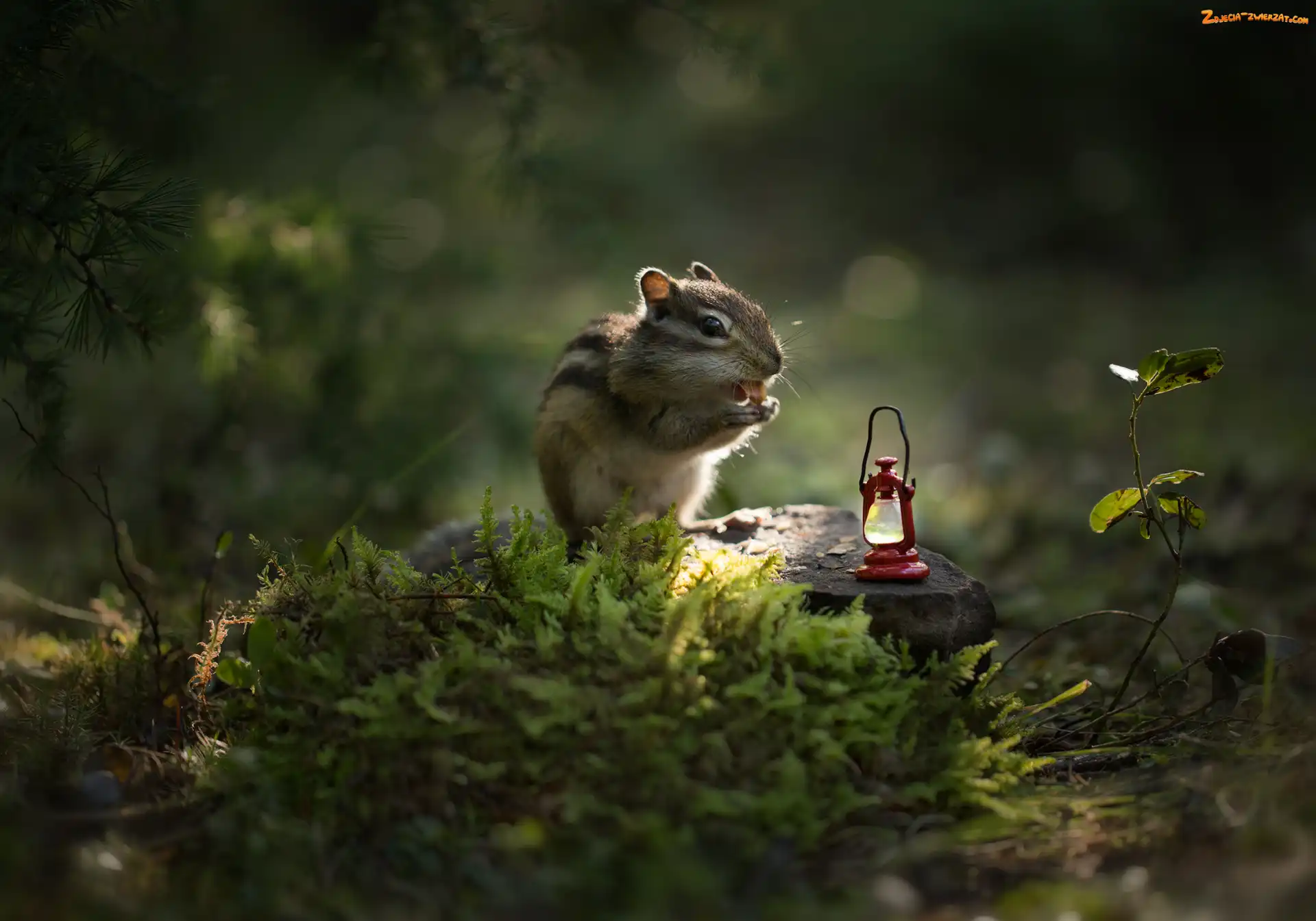 Lampka naftowa, Pręgowiec, Światło, Mech, Chipmunk, Kamienie