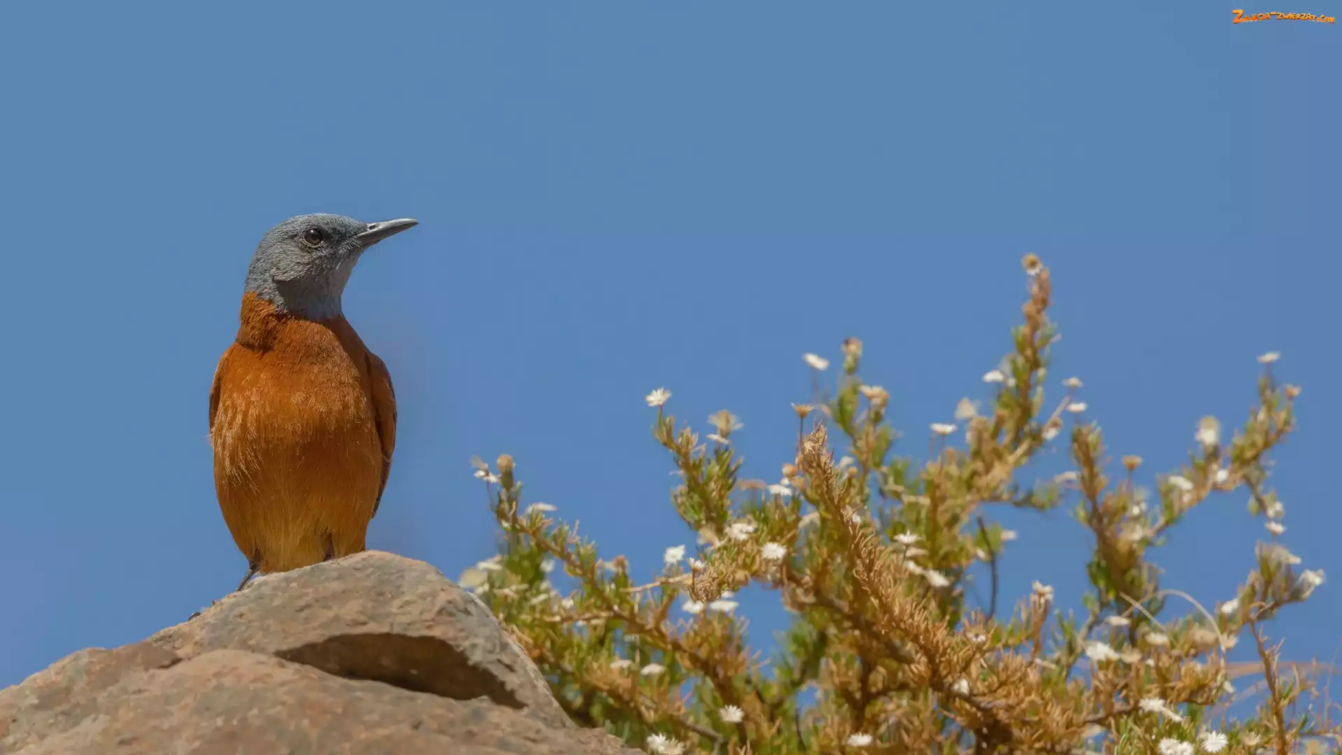 Zdjęcie: Nagórnik skalny, Skała, Ptak, Krzew