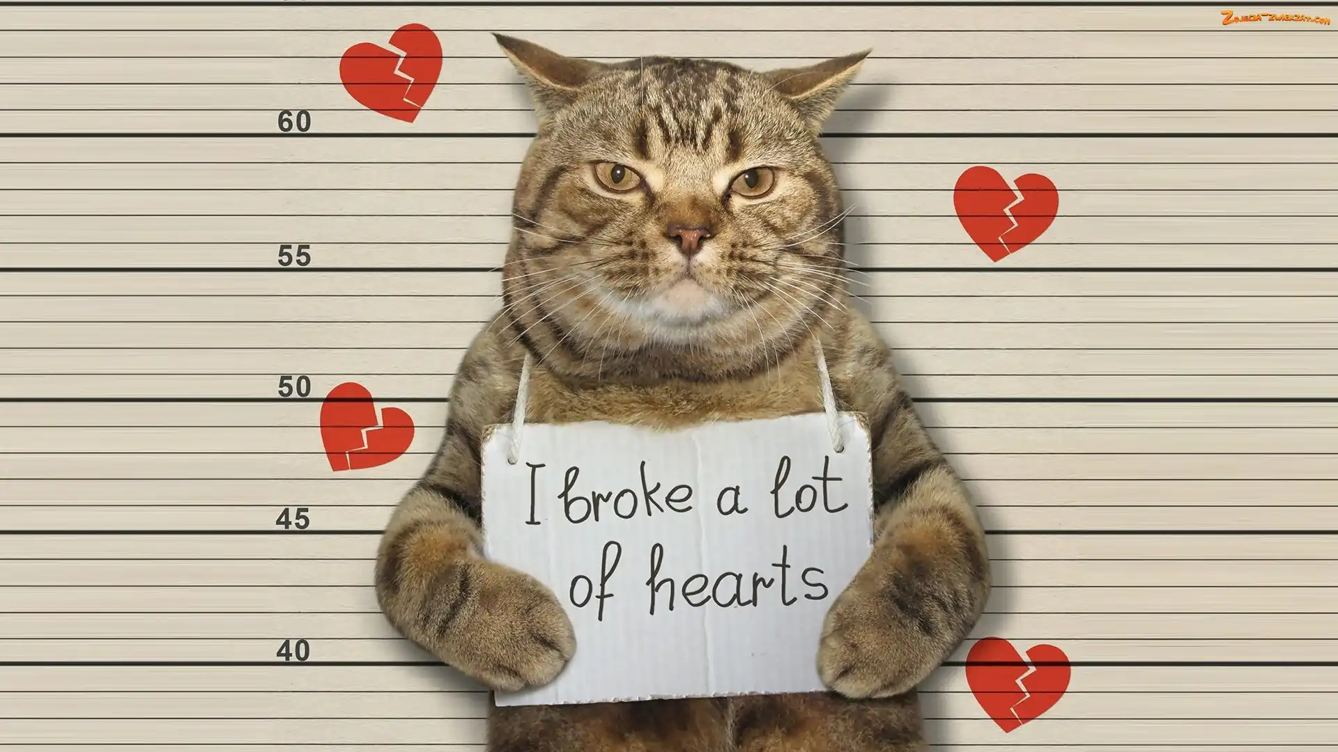 Zdjęcie: Serca, I broke a lot of hearts, Kartka, Kot, Napis