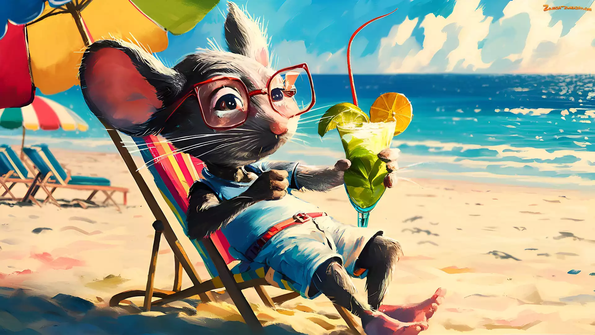 Zdjęcie: Morze, Parasol, Plaża, Śmieszne, Grafika, Myszka, Leżak, Napój
