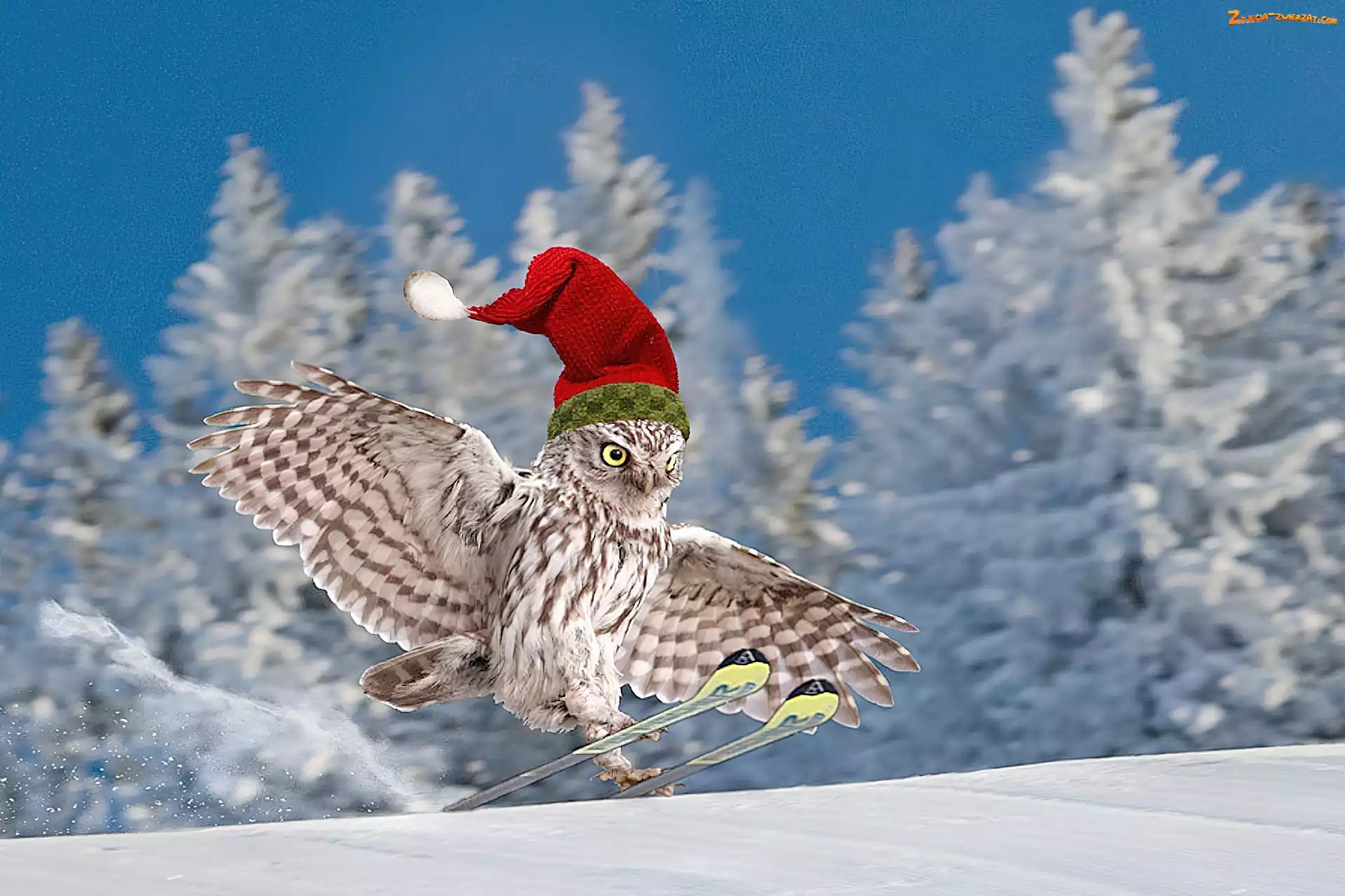 Zdjęcie: Sowa, Narty, Zima, Czapka