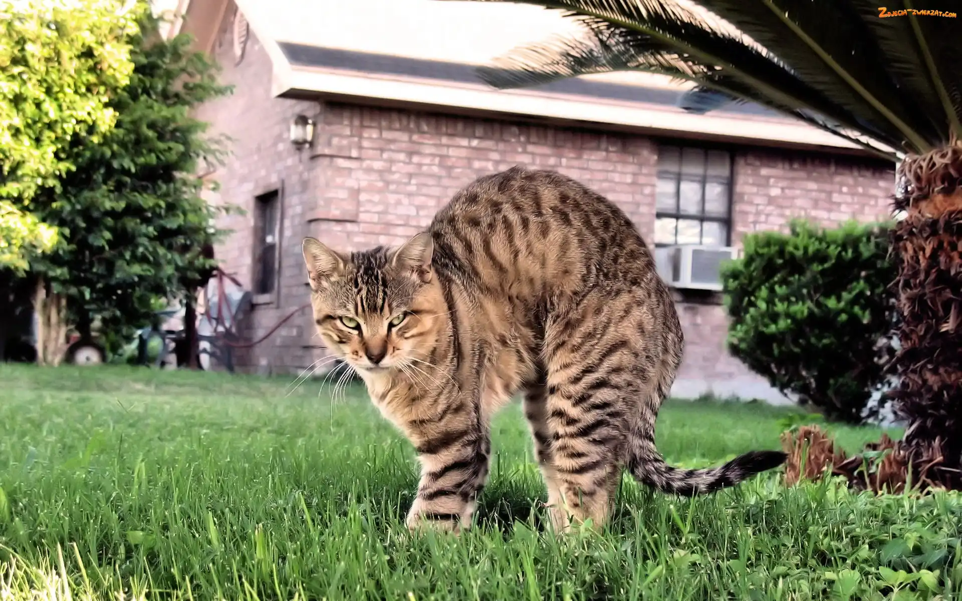 Nastroszony, Kot, Domek, Ogródek, Grzbiet, Agresja