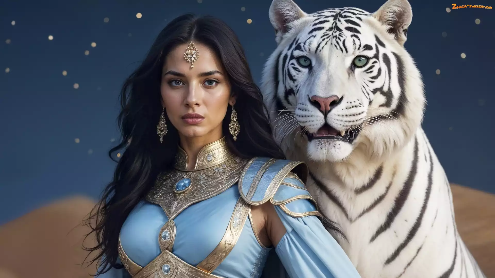 Tygrys, Sukienka, Dziewczyna, Niebieska, Biżuteria, Biały