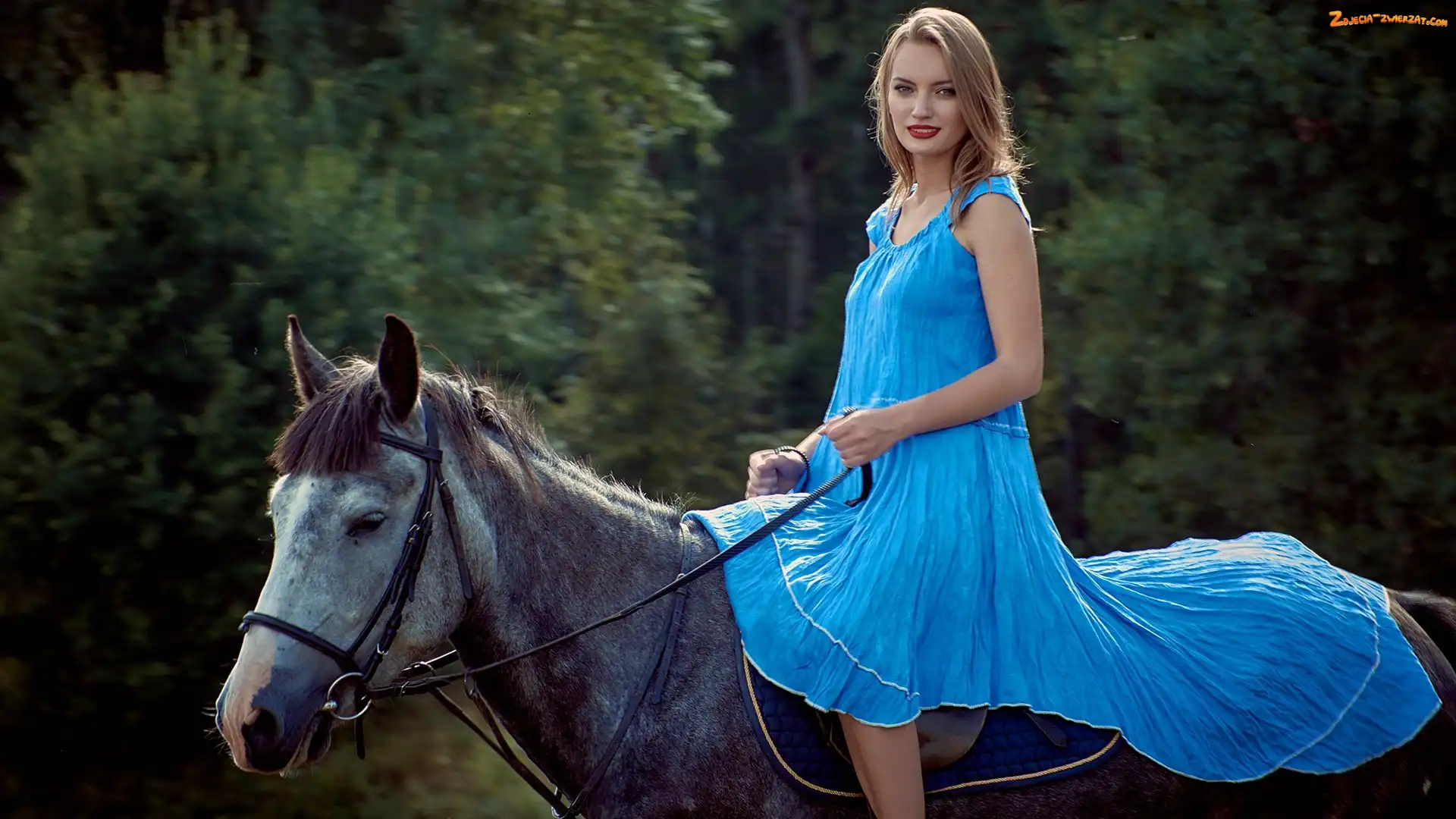 Zdjęcie: Niebieska, Koń, Kobieta, Sukienka