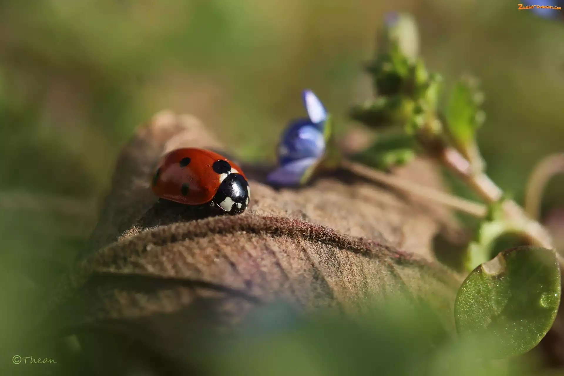 Zdjęcie: Niebieski , Liść, Biedronka, Kwiatek