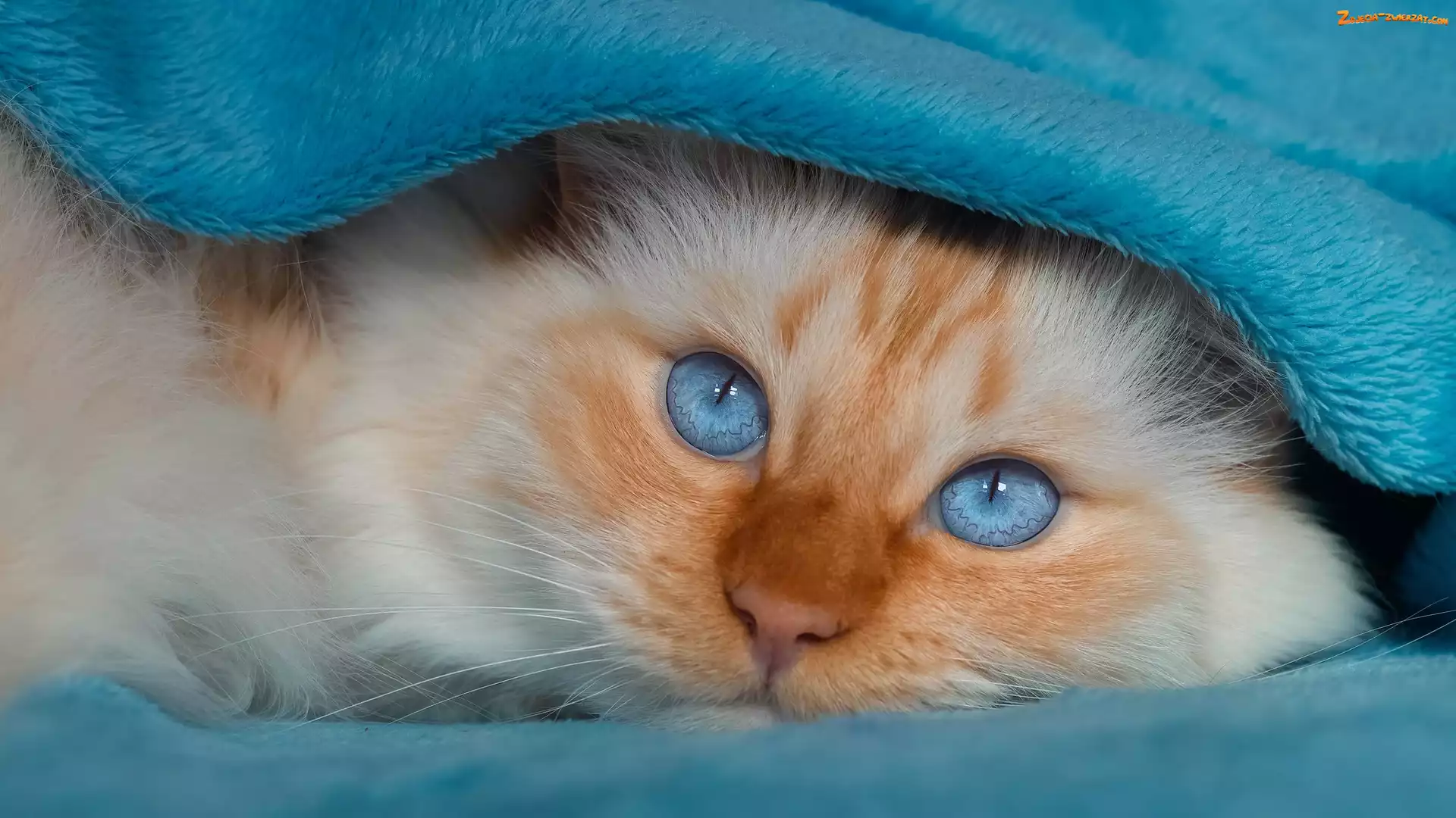 Zdjęcie: Niebieskooki, Kot, Koc, Niebieski