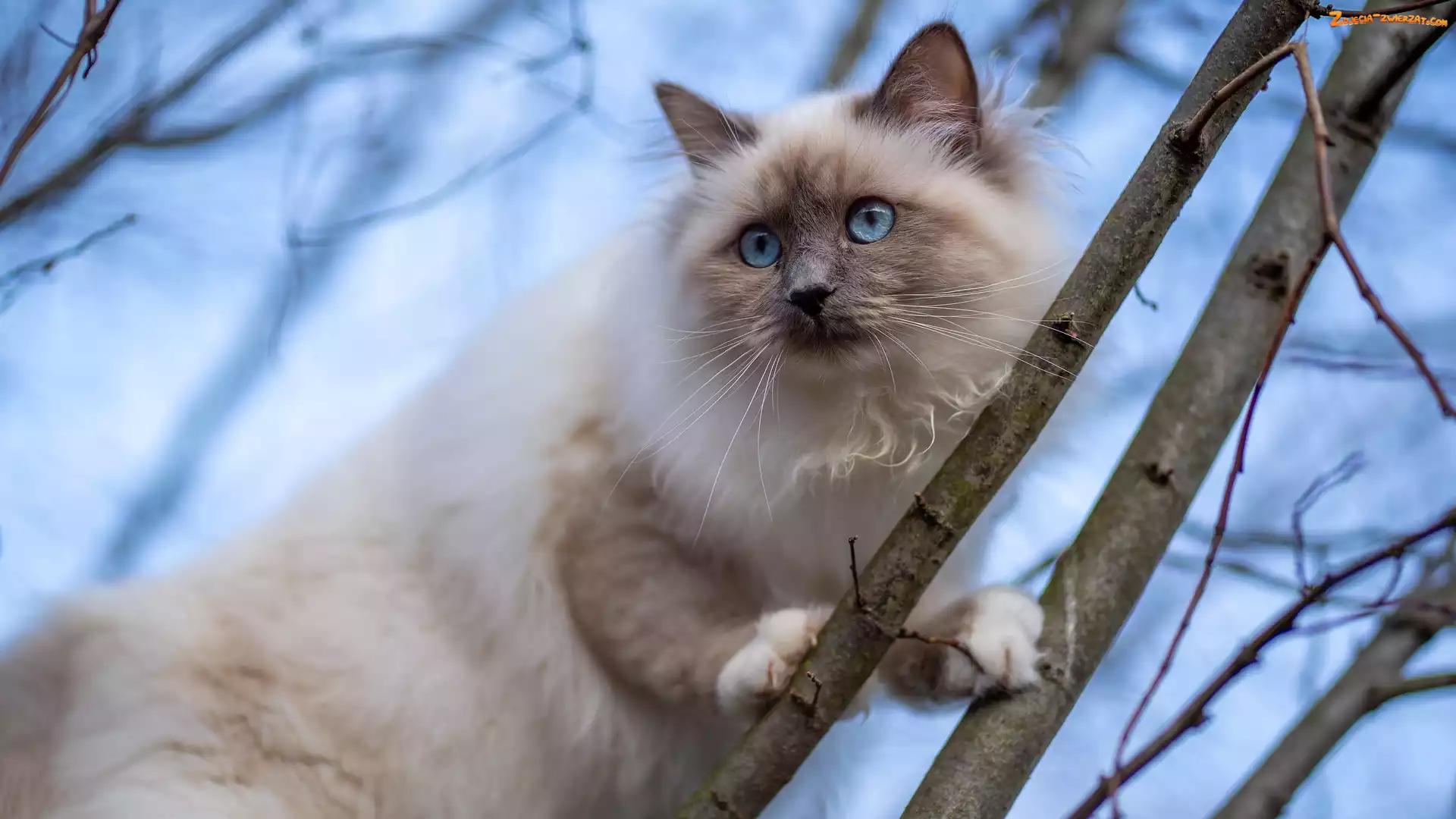 Zdjęcie: Niebieskie, Gałązki, Kot birmański, Oczy