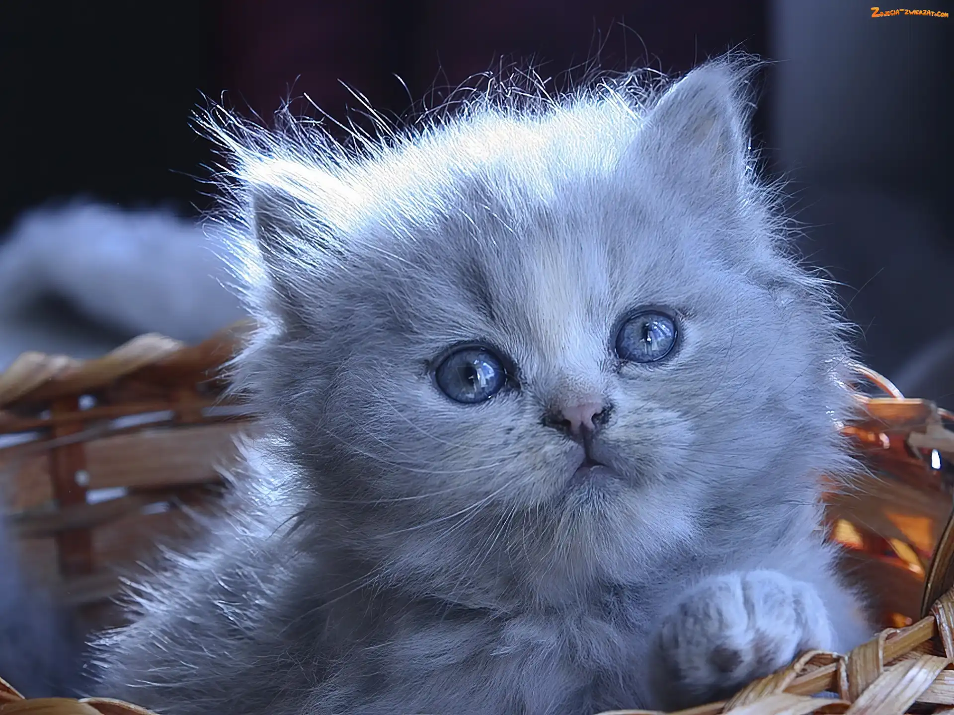 Zdjęcie: Kociak, Niebieskie, Koszyk, Oczy