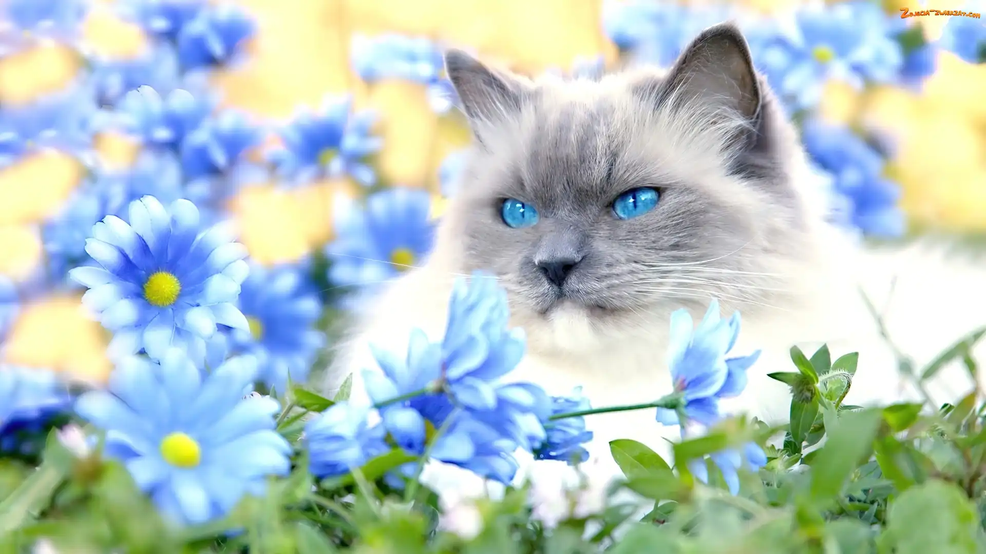 Zdjęcie: Niebieskie, Margerytki, Kot, Oczy