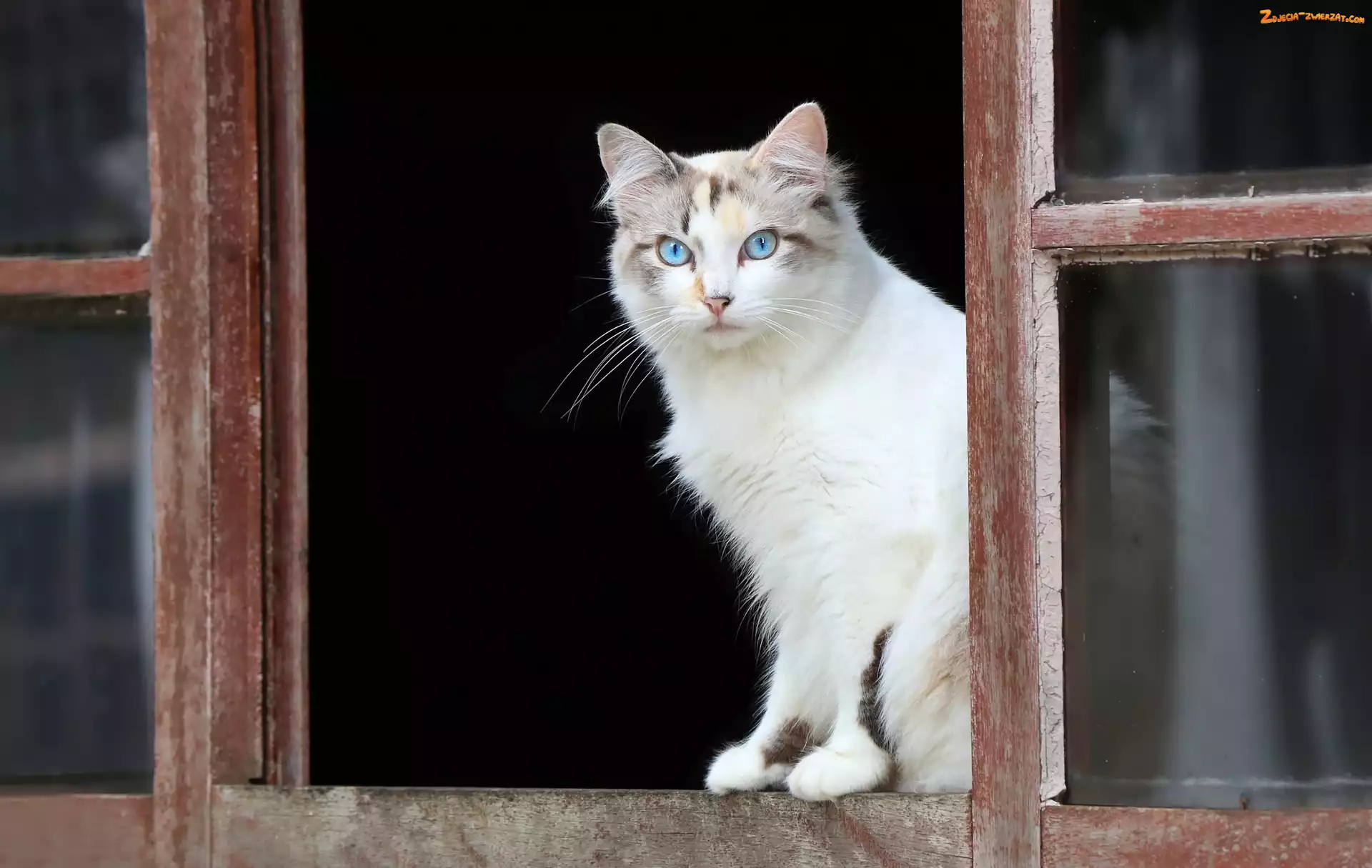 Zdjęcie: Niebieskie, Okno, Kot, Oczy