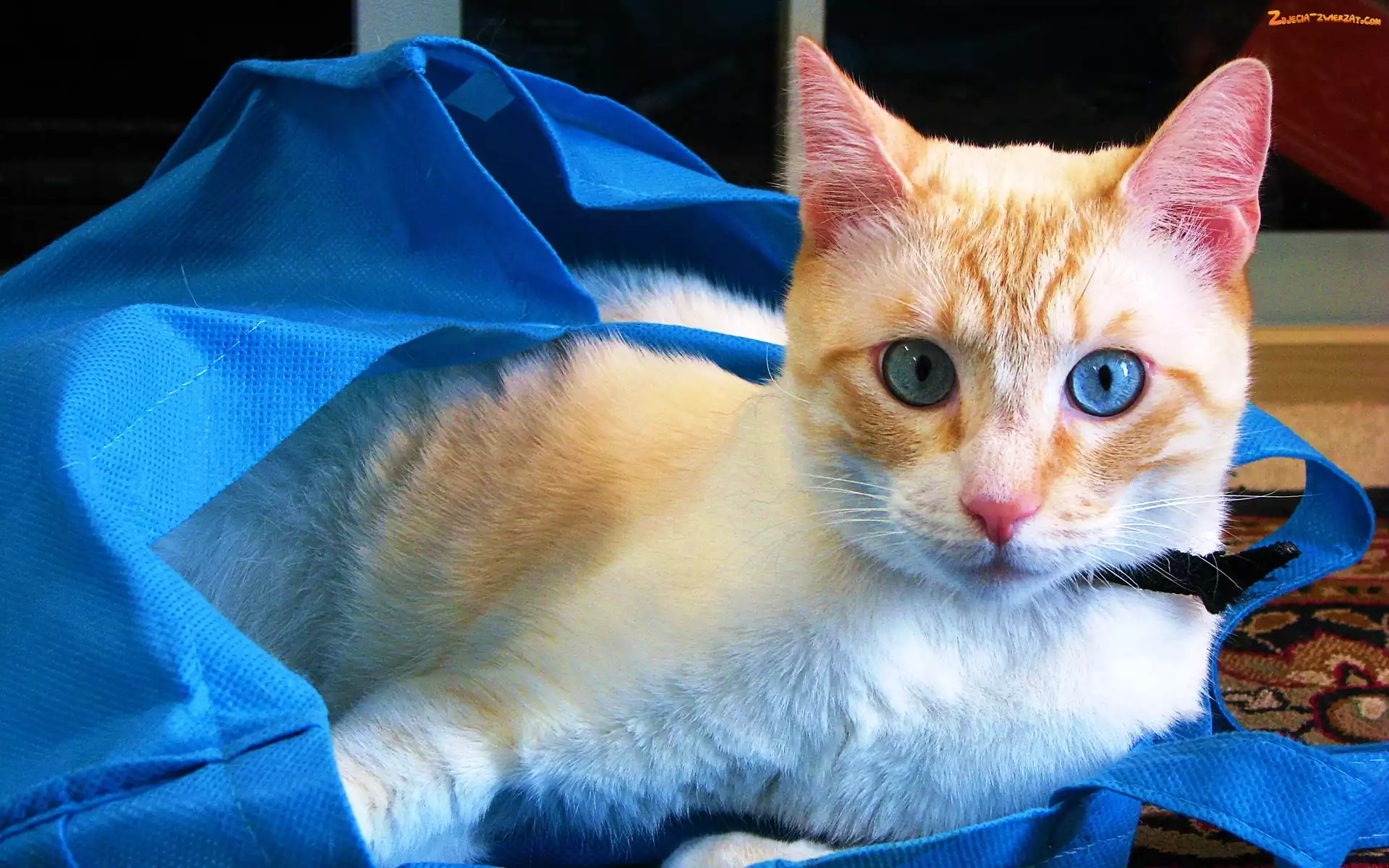 Zdjęcie: Niebieskie, Torba, Kotek, Oczy