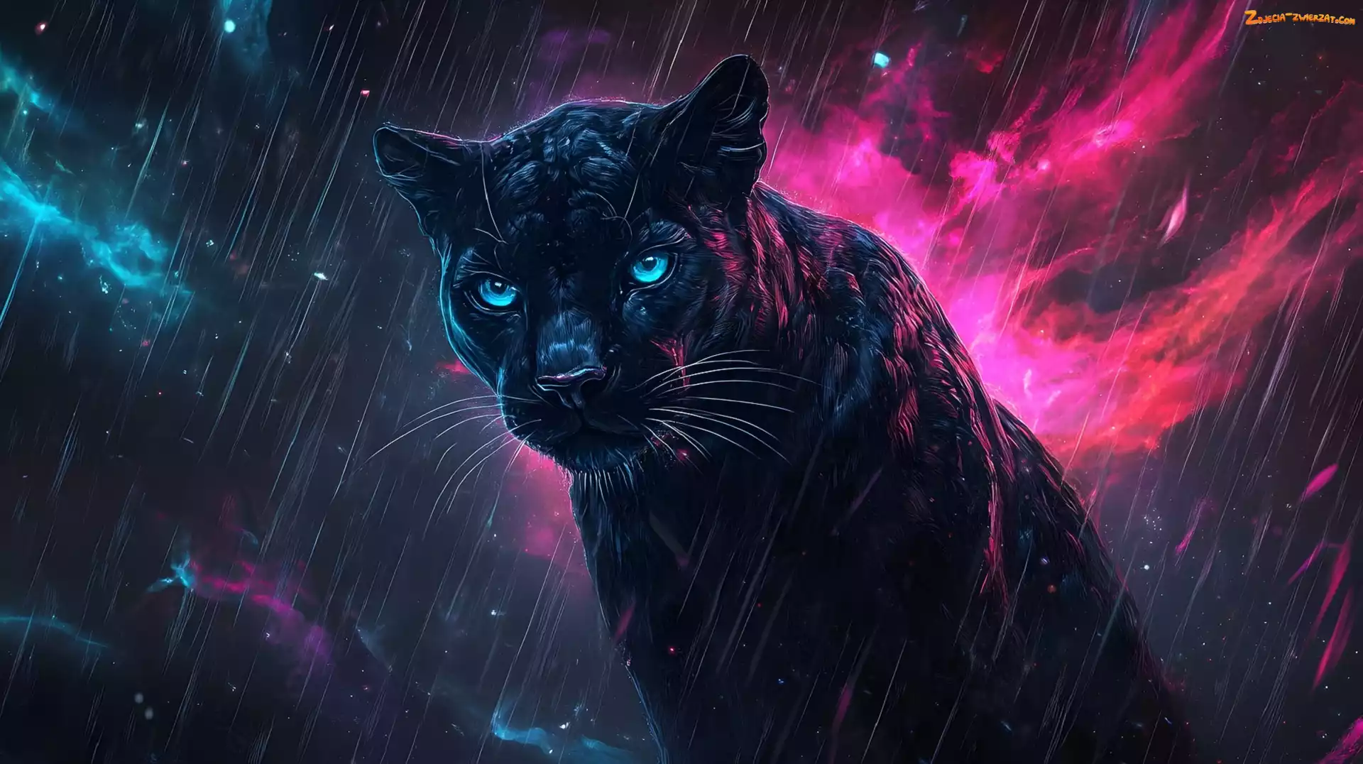 Zdjęcie: Kolorowe, Deszcz, Niebo, Czarny, Grafika, Lampart, Oczy, Niebieskie