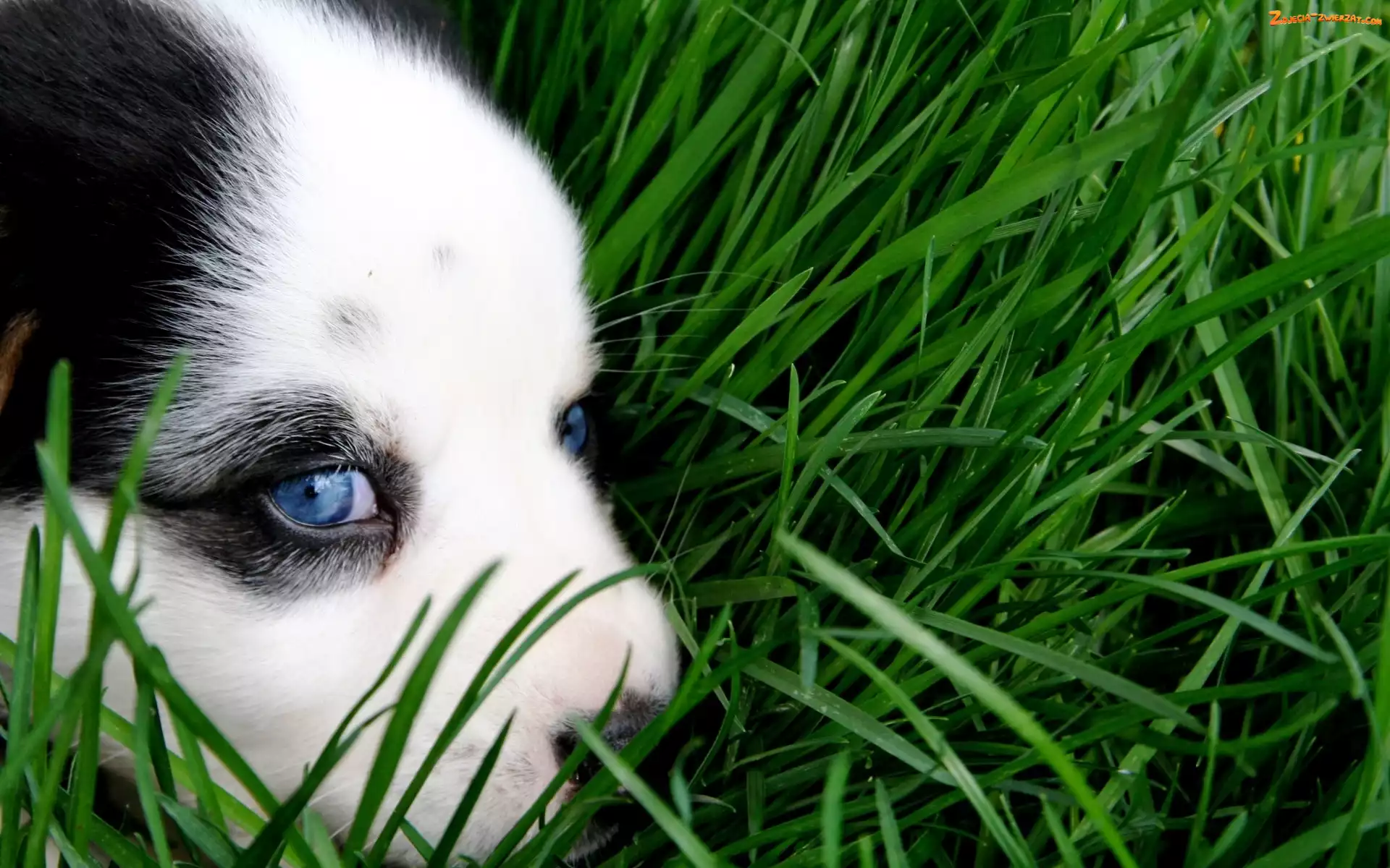 Zdjęcie: Niebieskie, Trawa, Szczeniak, Oczy