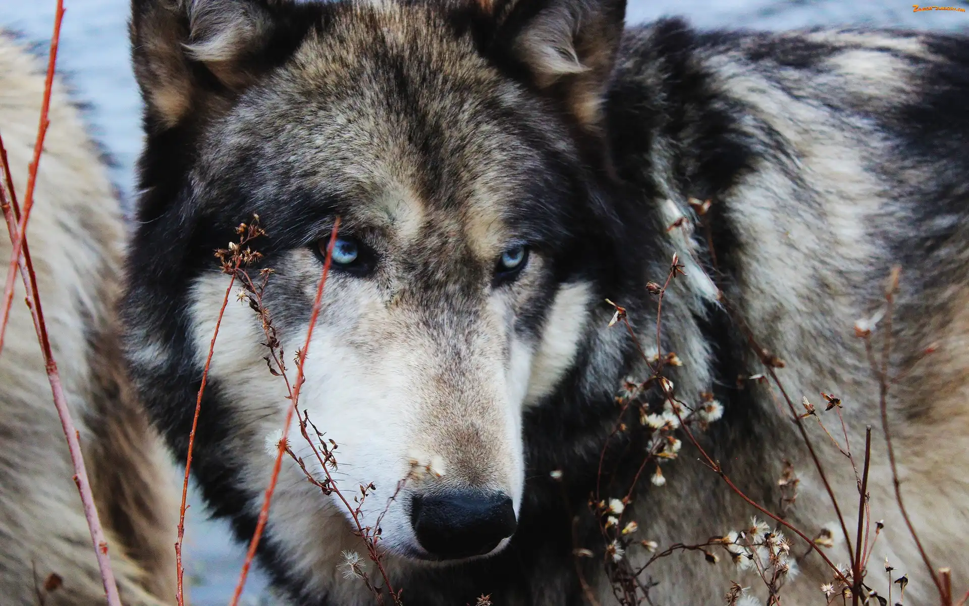 Zdjęcie: Niebieskie, Krzaczki, Wilk, Oczy