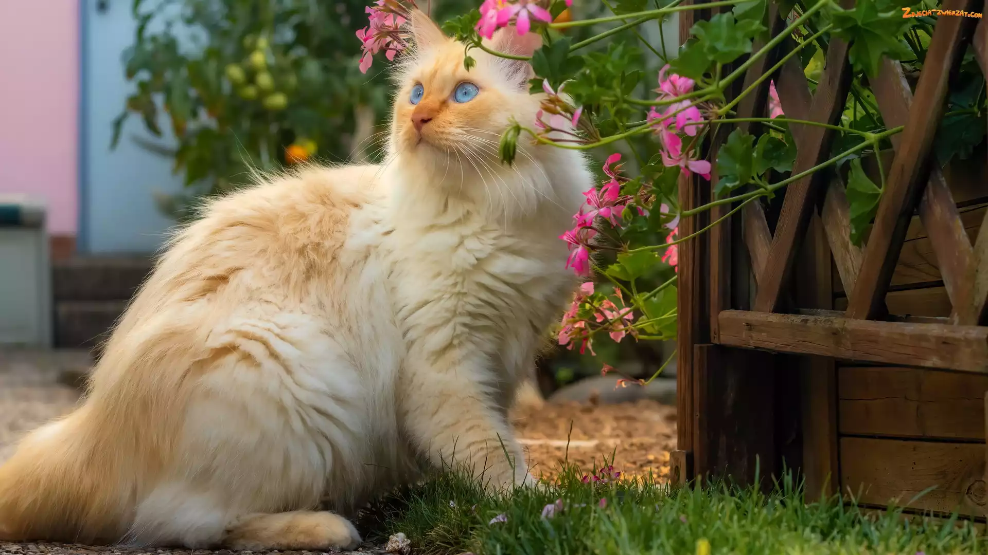 Zdjęcie: Pelargonie, Niebieskooki, Kot