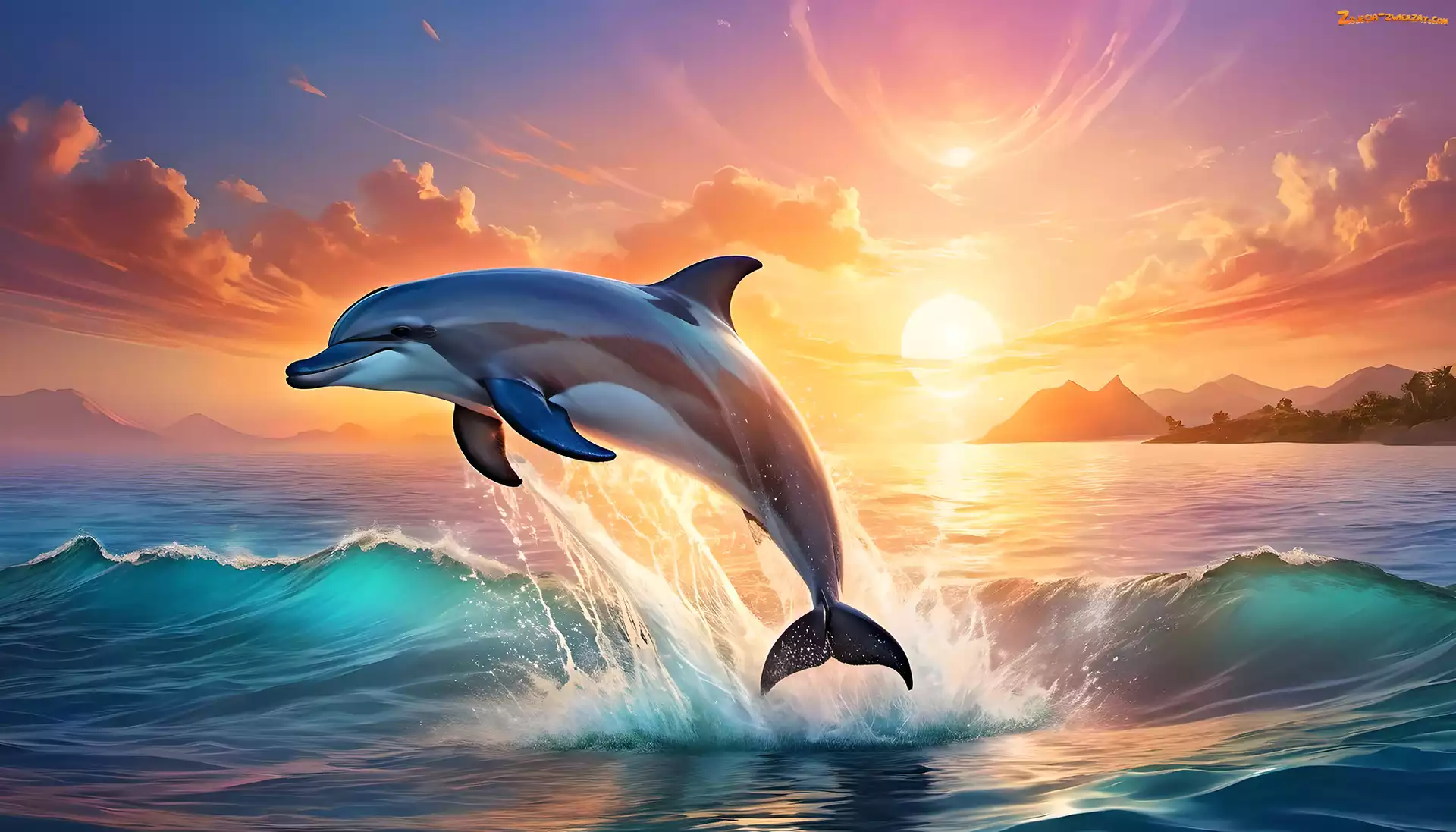 Zdjęcie: Morze, Chmury, Delfin, Niebo, Grafika, Zachód słońca