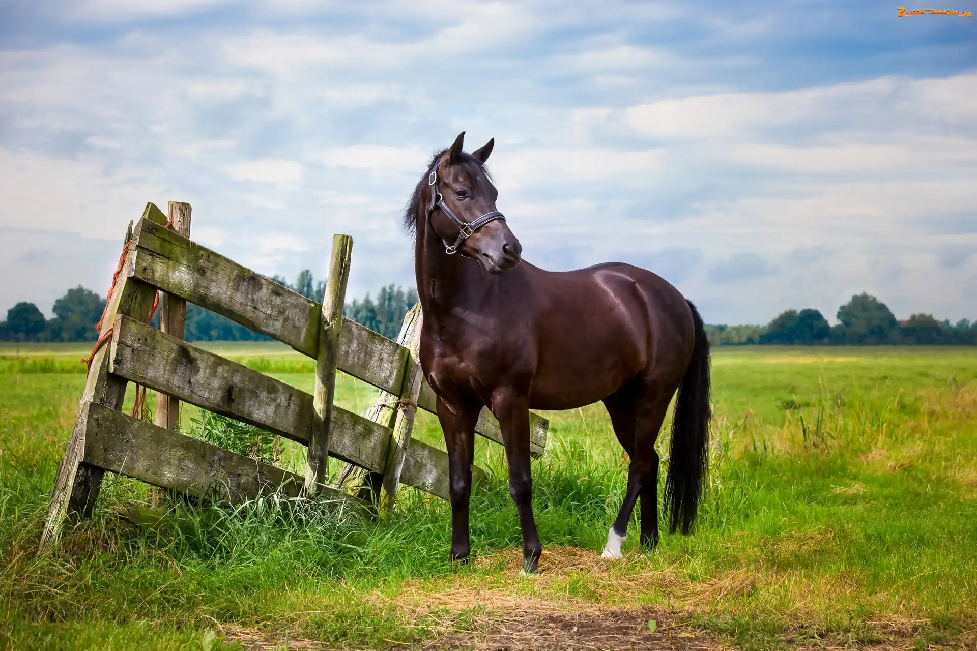 Zdjęcie: Niebo, Płot, Koń, Łąka