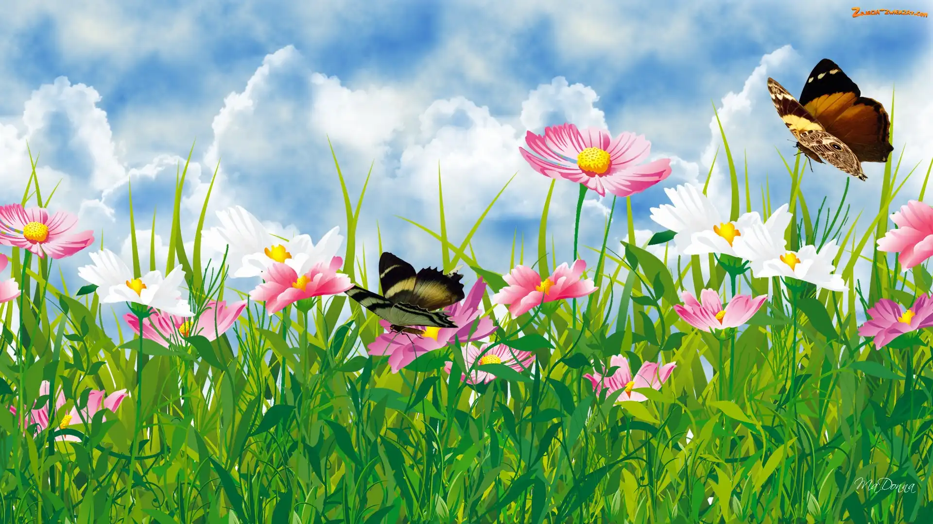 Zdjęcie: Niebo, Art, Kwiaty, Motyle