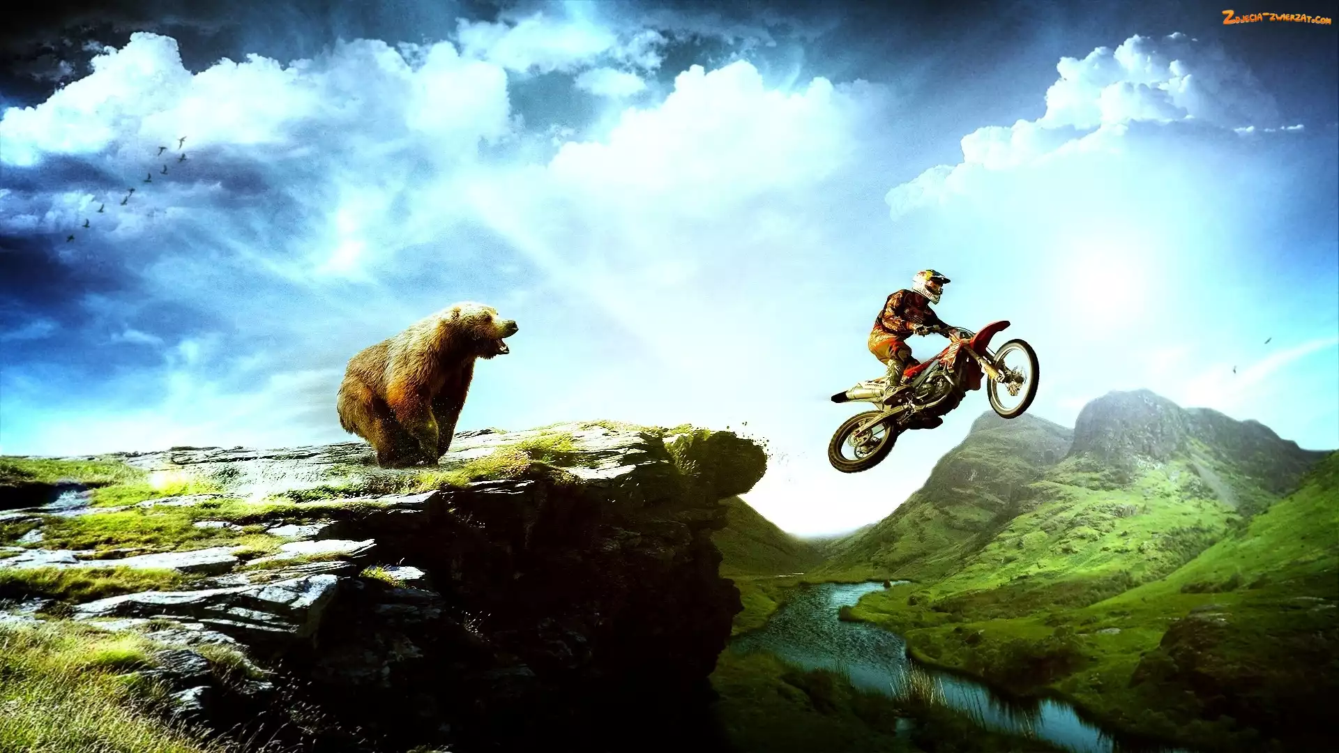 Niedźwiedź, Ucieczka, Rzeka, Motocykl