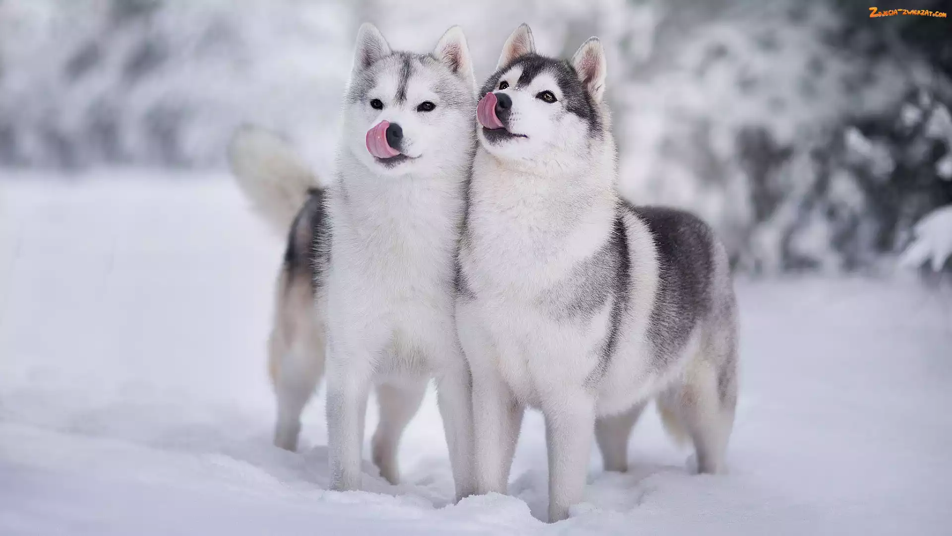 Zdjęcie: Śnieg, Zima, Psy, Dwa, Siberian husky