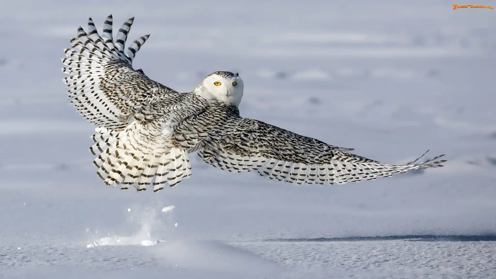 Zdjęcie: Śnieg, Skrzydła, Sowa śnieżna, Ptak, Rozpostarte