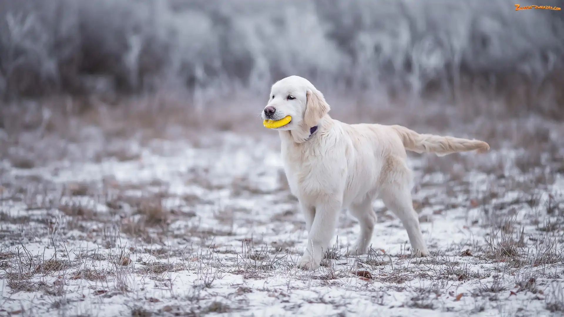 Zdjęcie: Śnieg, Golden Retriever, Zabawka, Pies, Szczeniak