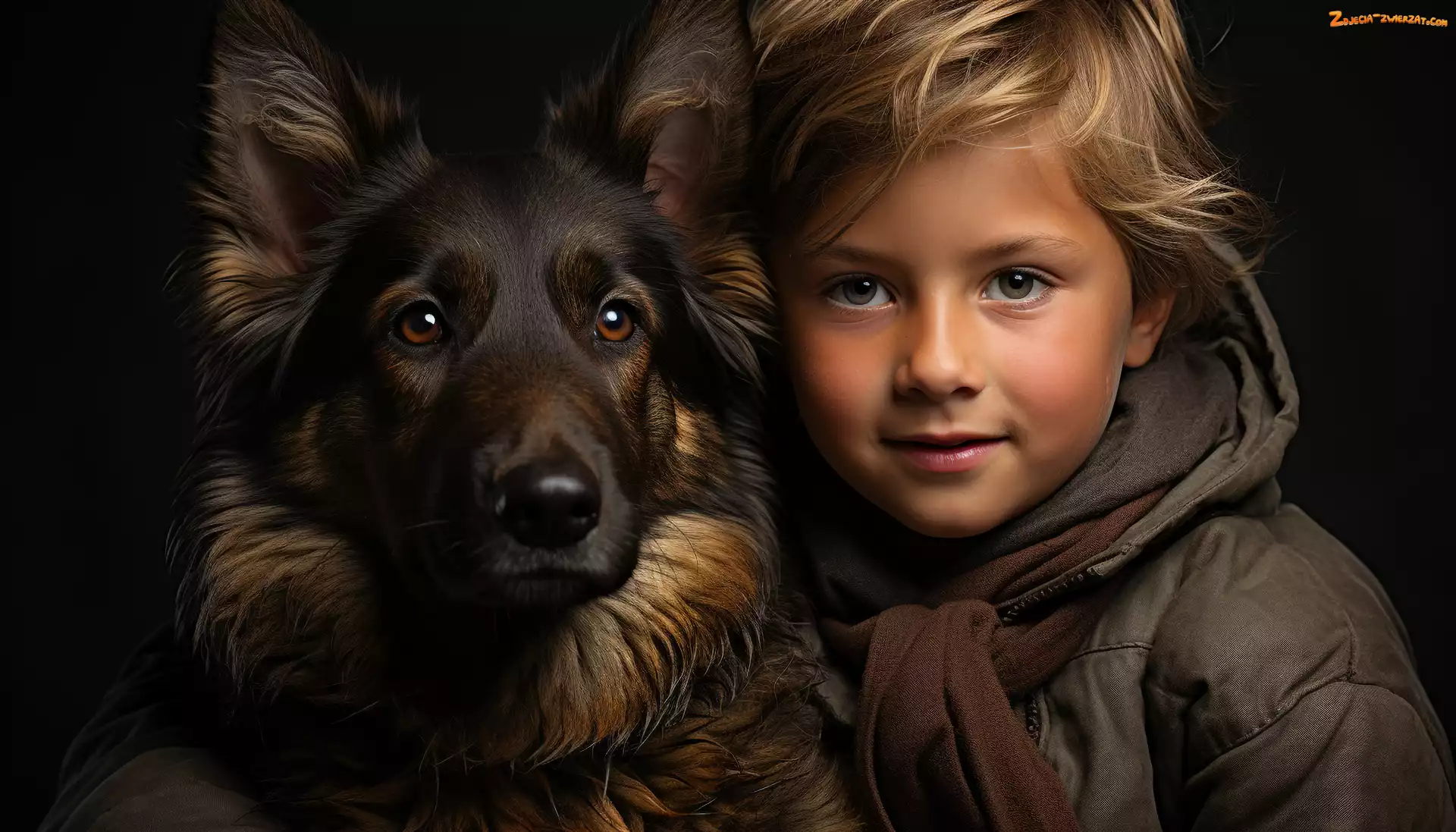 Zdjęcie: Pies, Szalik, Owczarek niemiecki, Chłopiec, Kurtka