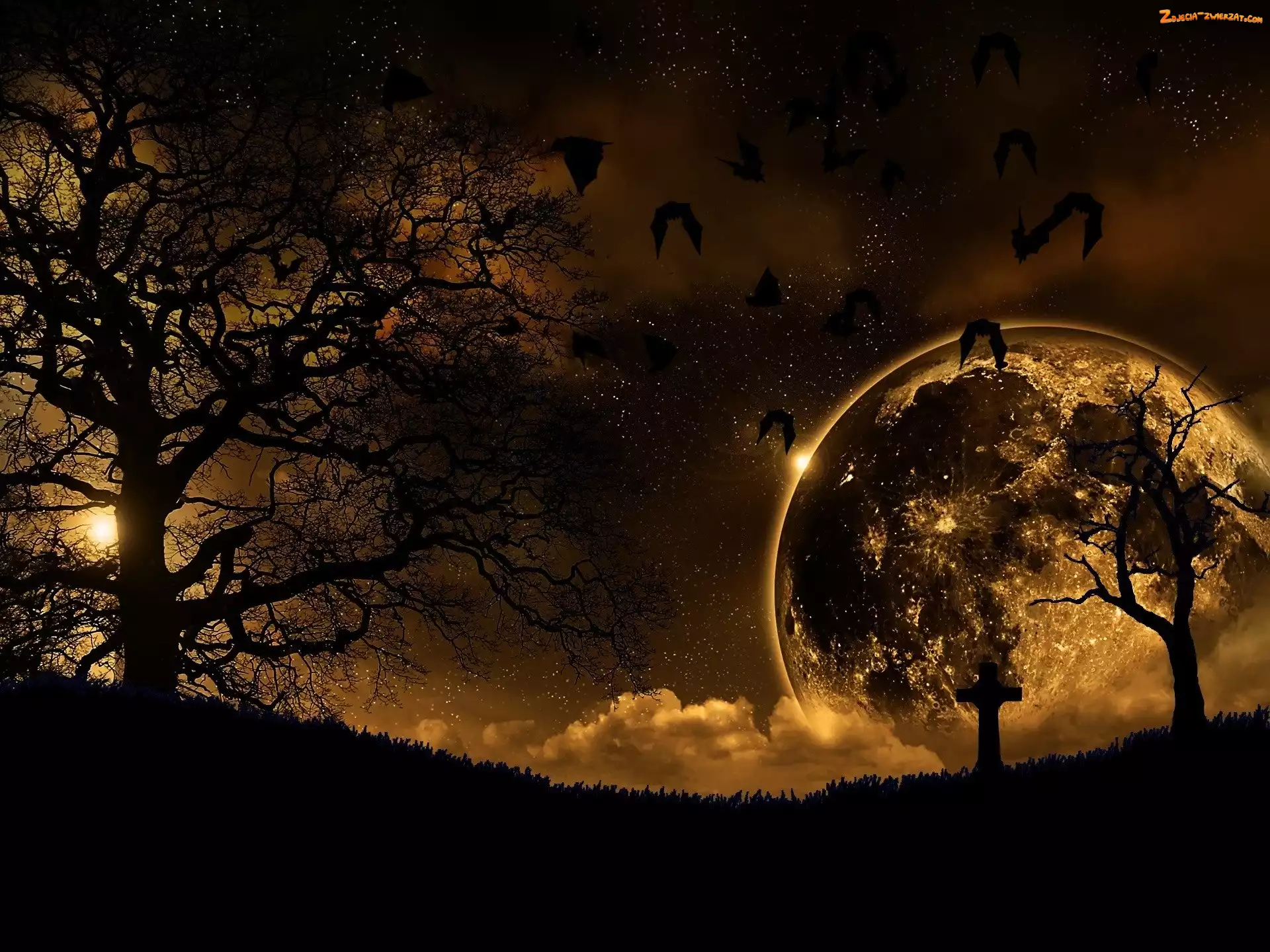 Zdjęcie: Nietoperze, Drzewa, Cmentarz, Noc, Księżyc