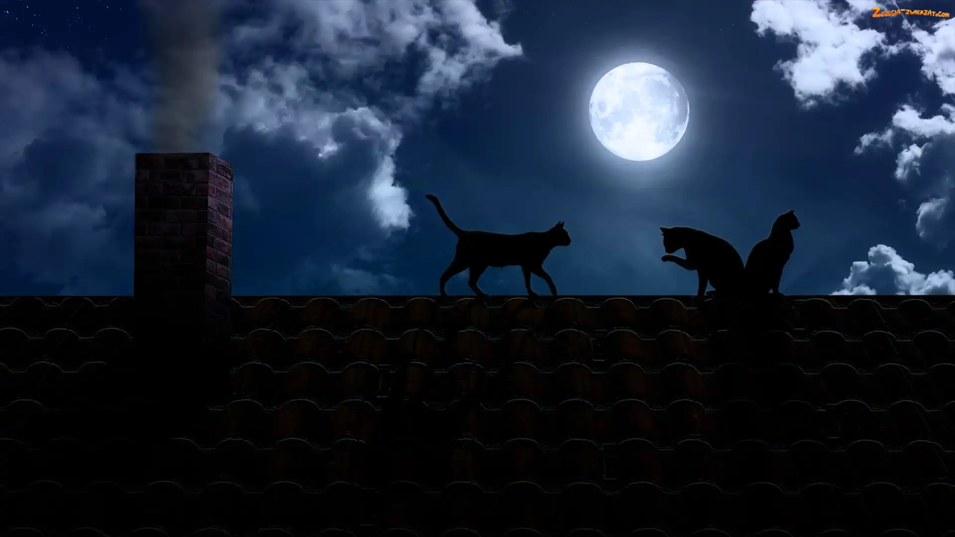 Noc, Księżyc, Koty, Dach