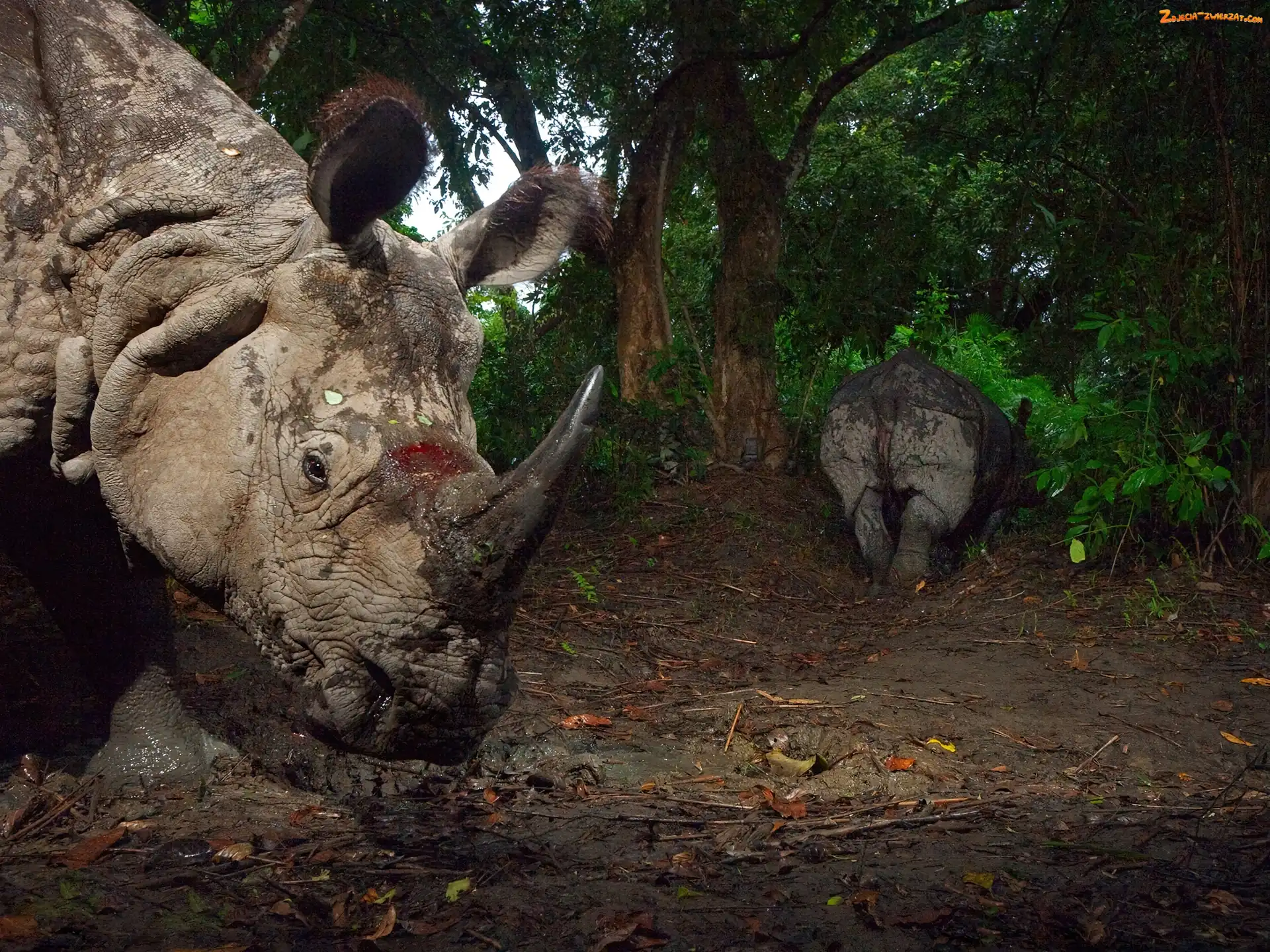 Zdjęcie: Nosorożce, Drzewa, Dwa, Róg