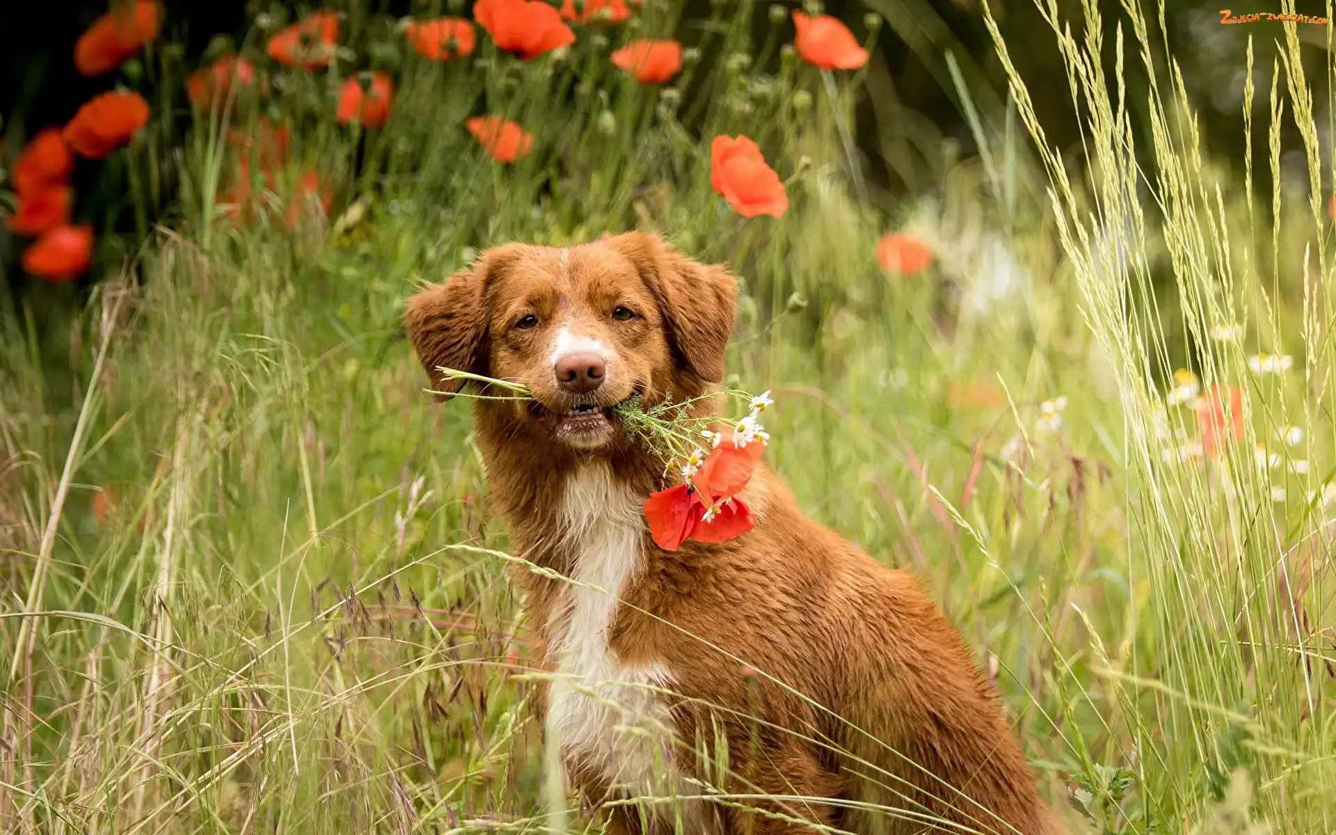 Zdjęcie: Retriever z Nowej Szkocji, Trawa Retriever z Nowej Szkocji, Pies, Maki
