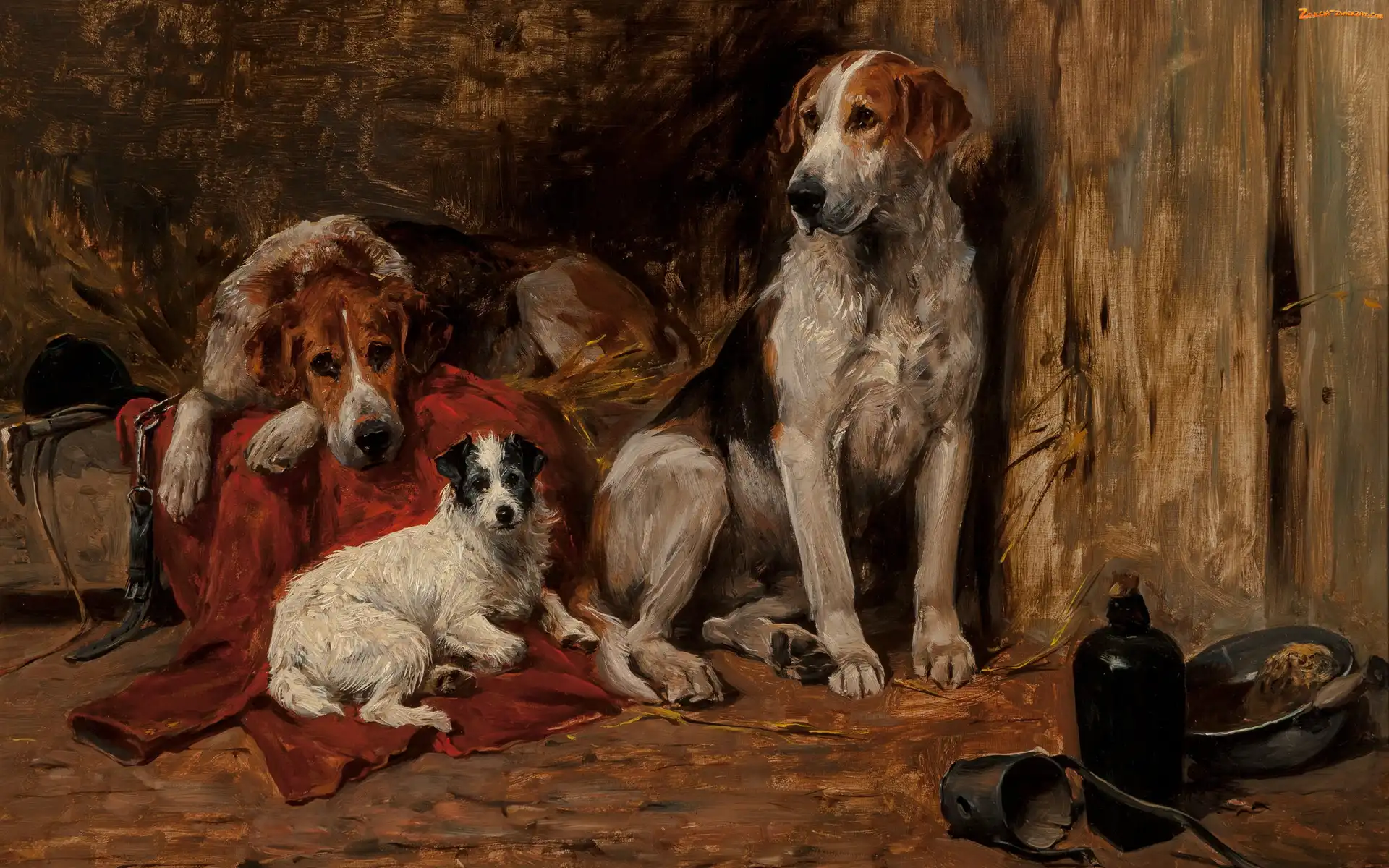 Foxhound, Psy, John Emms, Malarstwo, Jack Russell terrier, Obraz