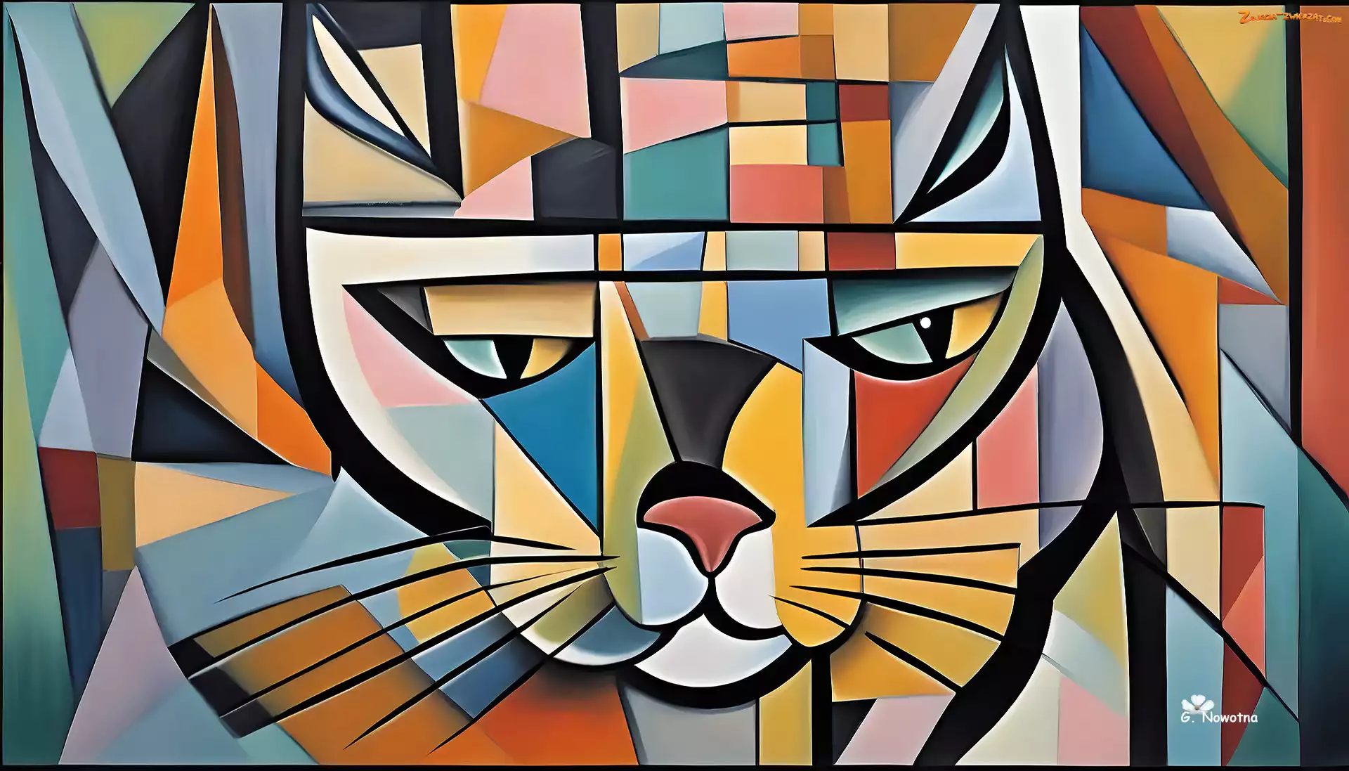 Zdjęcie: Kot, Grafika, Kubizm, Obraz