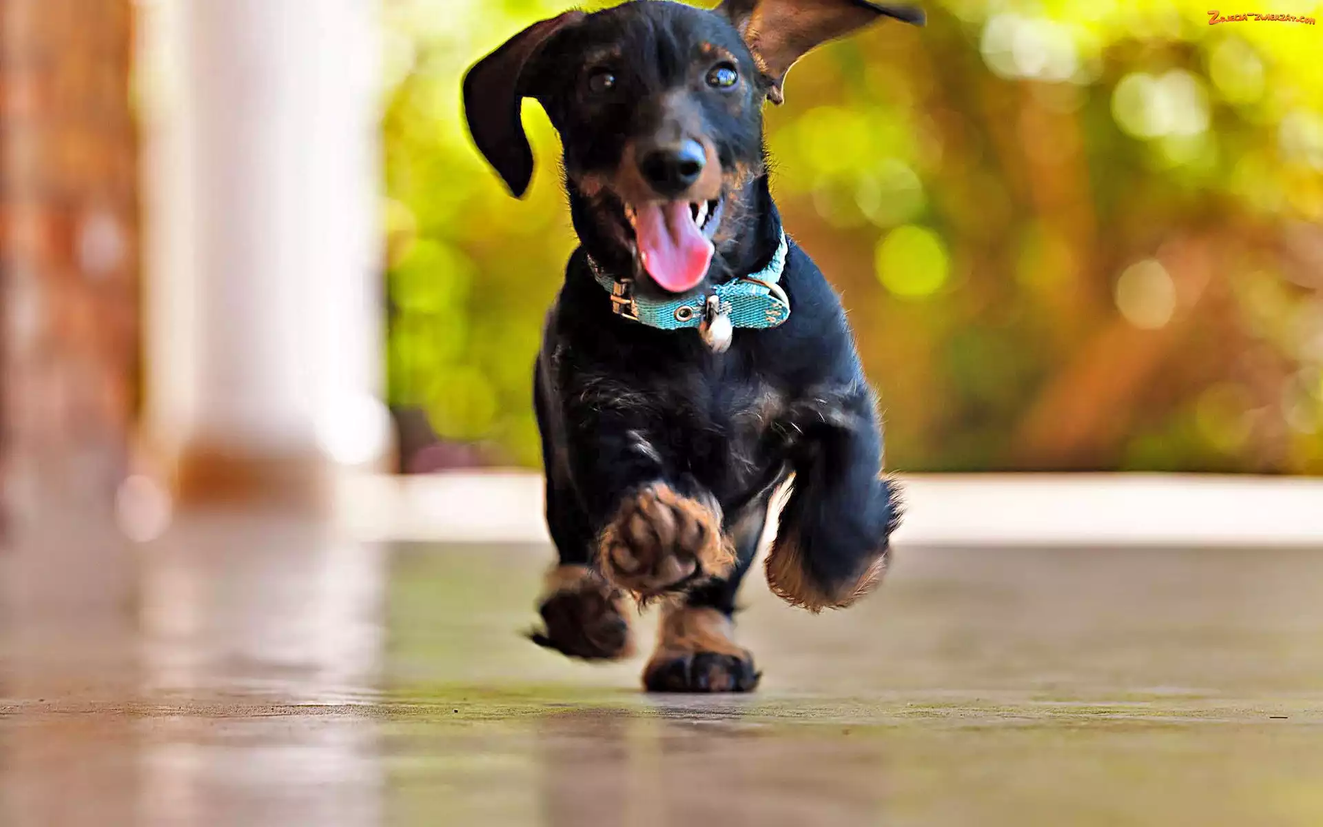 Zdjęcie: Obroża, Język, Jamnik, Bieg
