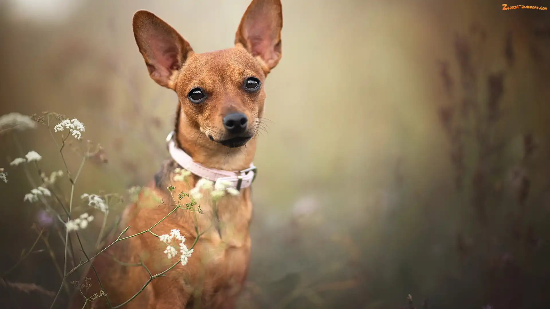Zdjęcie: Stojące, Obroża, Pies, Uszy, Długie, Pinczer miniaturowy, Mordka