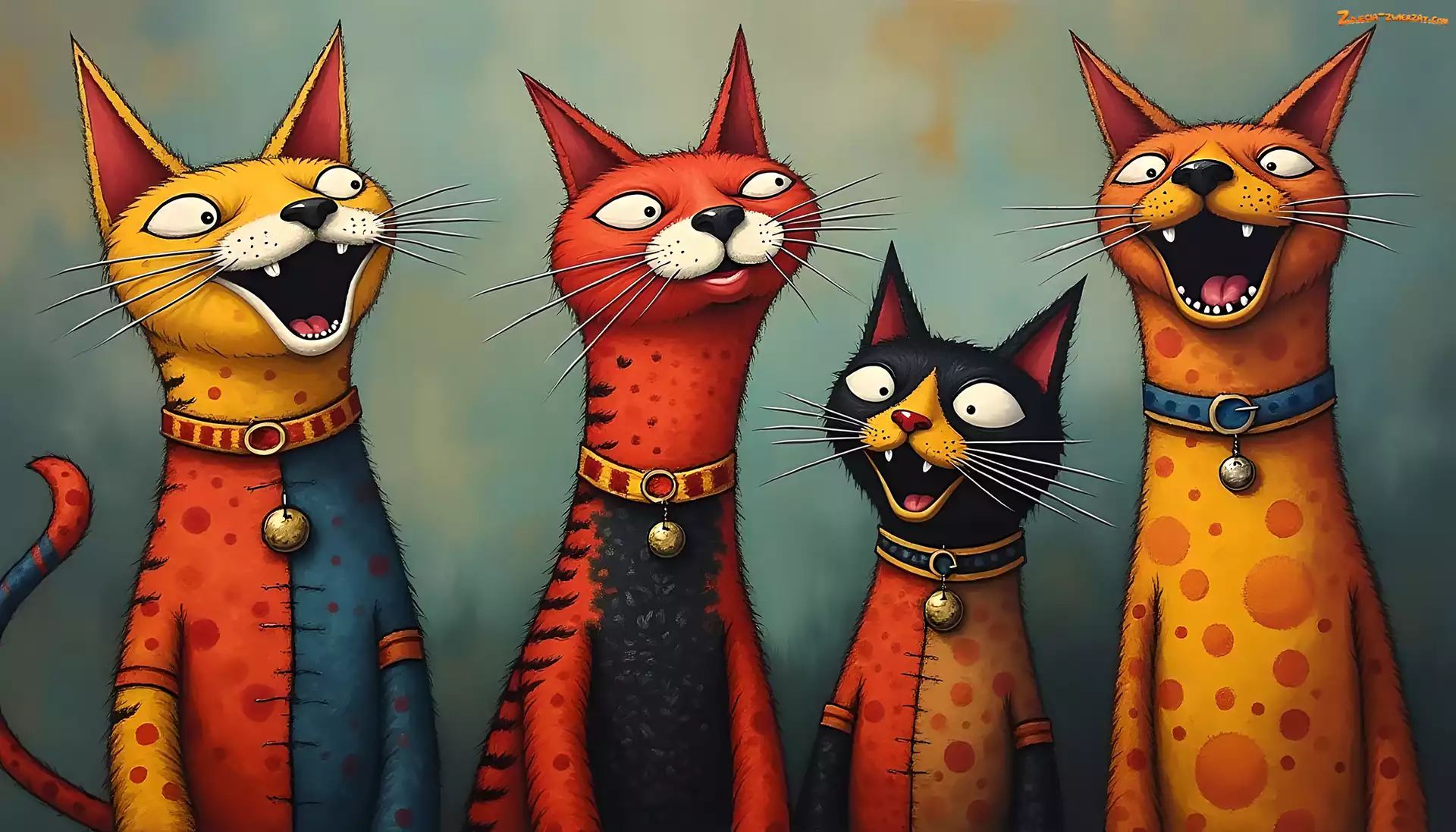 Zdjęcie: Dzwoneczki, Obróżki, Grafika, Cztery, Koty