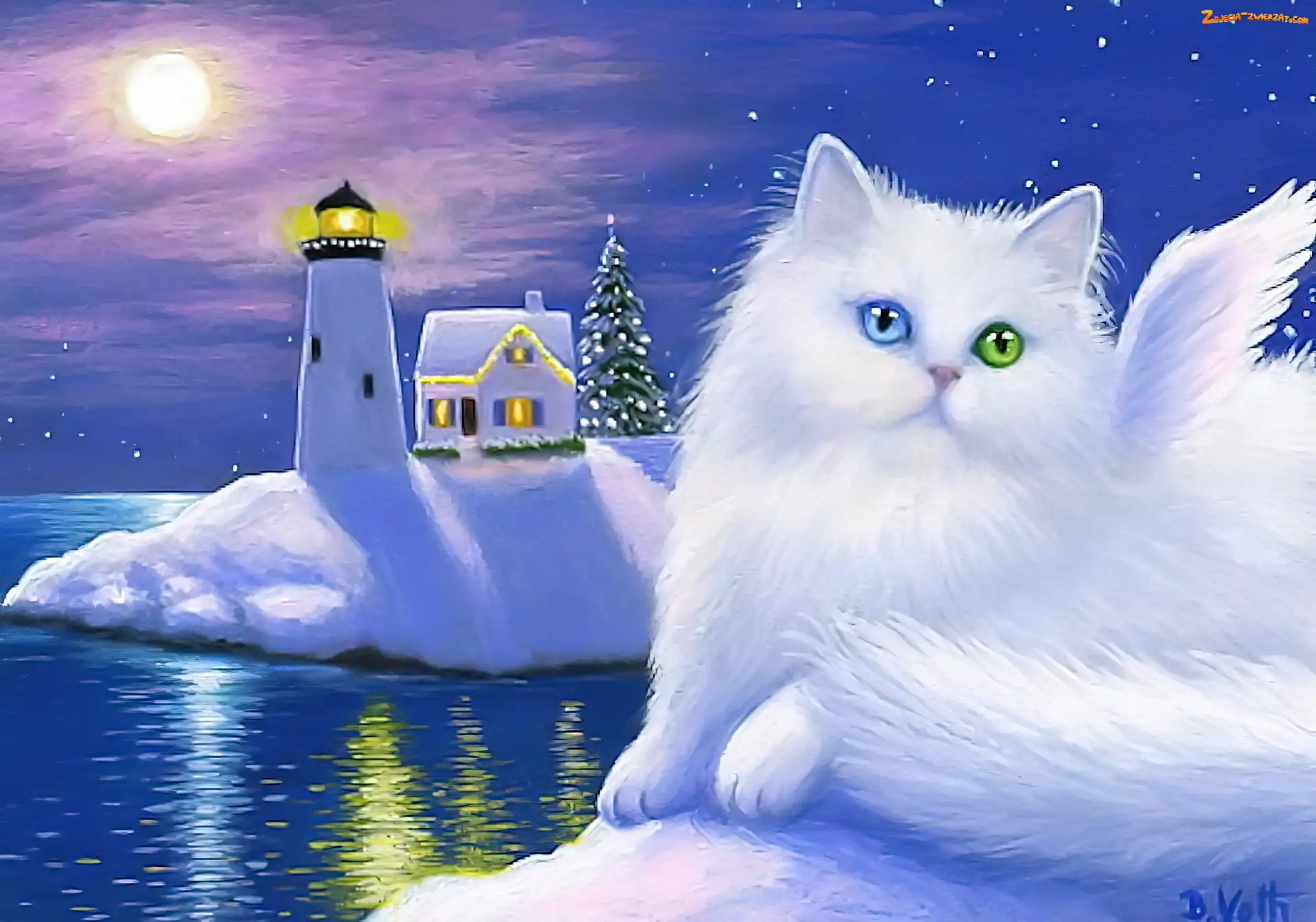 Zdjęcie: Morska, Oczy, Biały, Latarnia, Narodzenie, Kolorowe, Kot, Boże