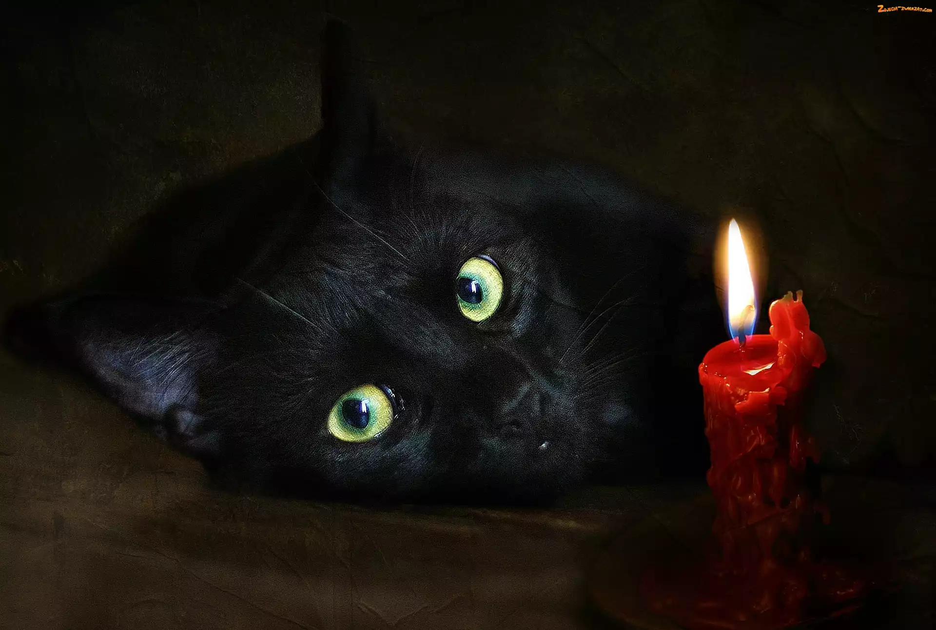 Zdjęcie: Oczy, Zielone, Kot, Czarny, Świeca