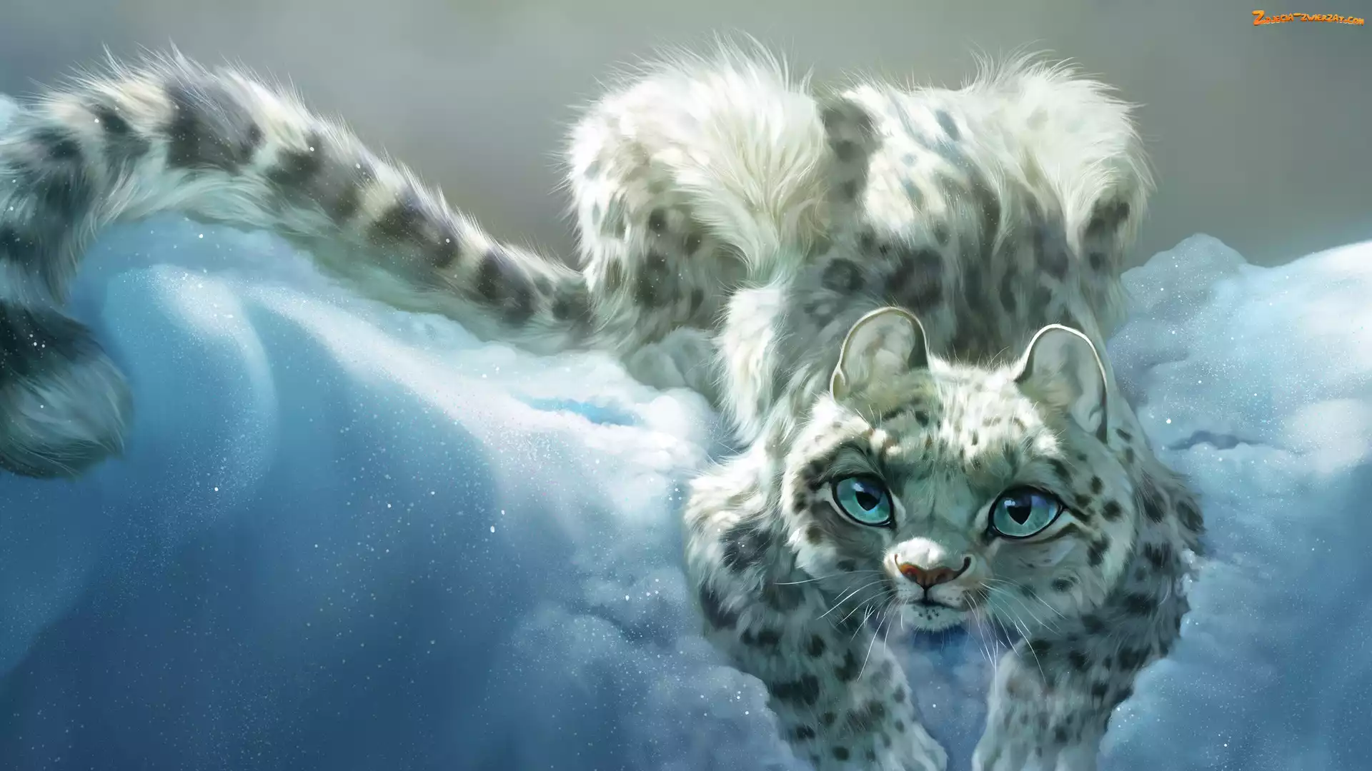 Zdjęcie: Śnieg, Oczy, Grafika, Irbis, Niebieskie