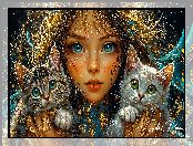 Dwa, Oczy, Koty, Dziewczynka, Niebieskie