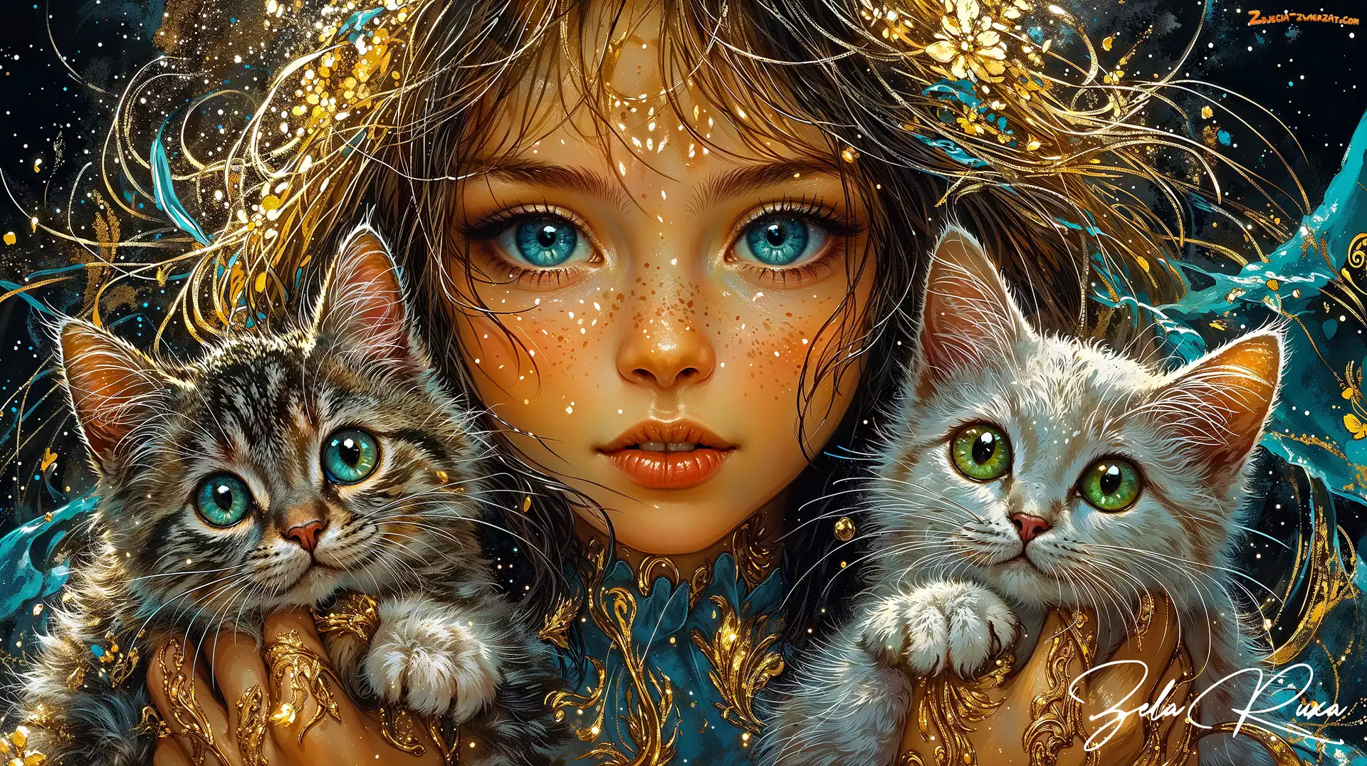 Zdjęcie: Dwa, Oczy, Koty, Dziewczynka, Niebieskie