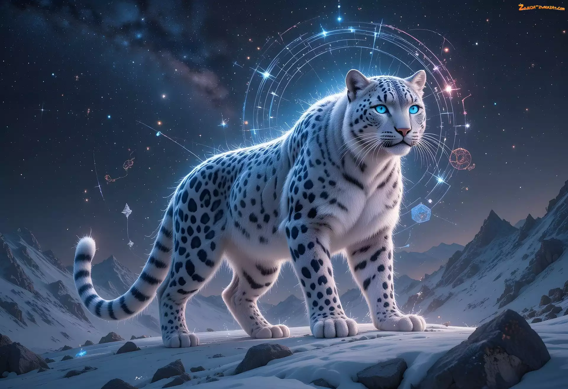 Zdjęcie: Góry, Biały, Lampart, Oczy, Grafika, Niebieskie, Zima