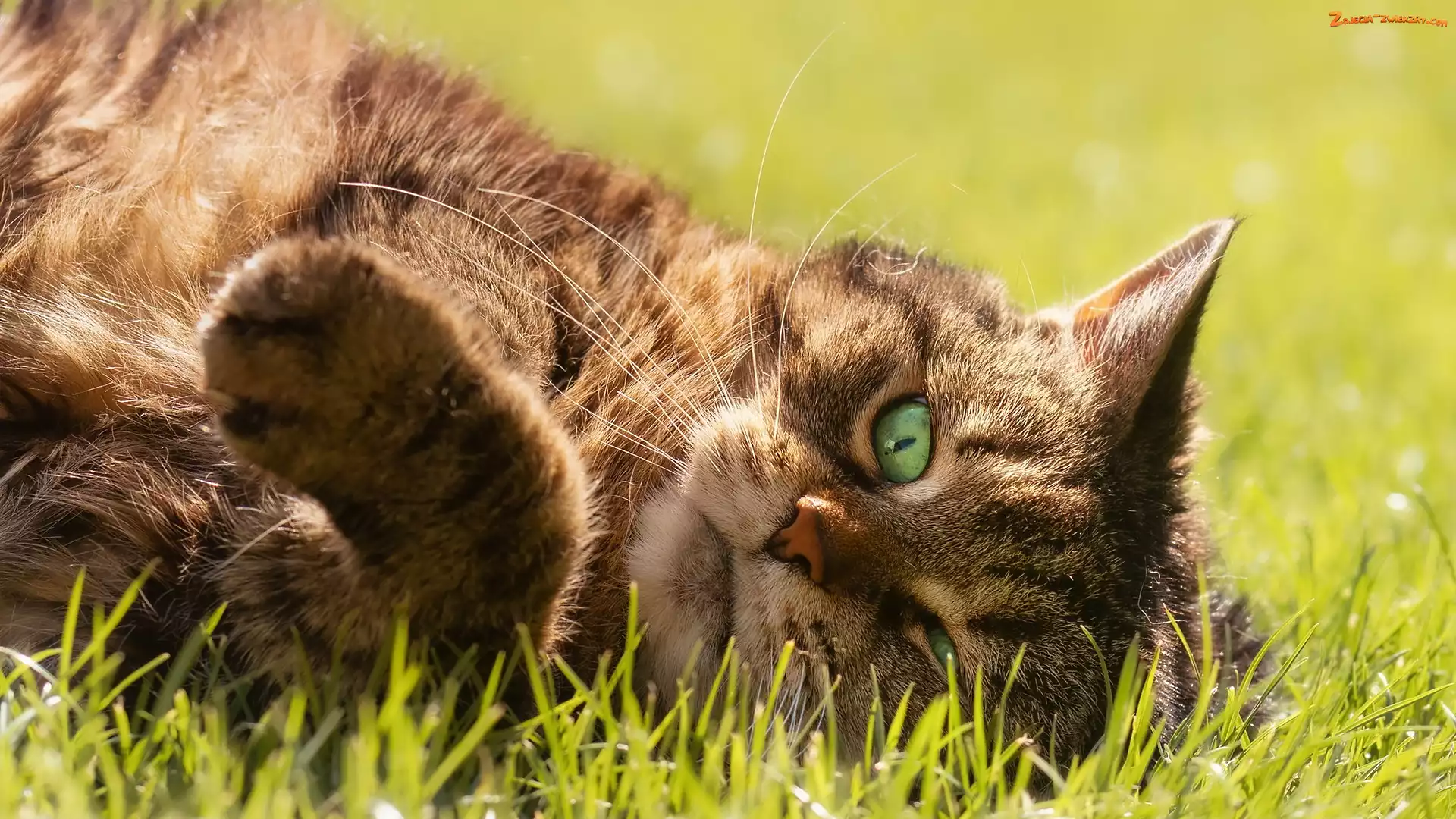 Zdjęcie: Oczy, Zielone, Bury, Trawa, Kot