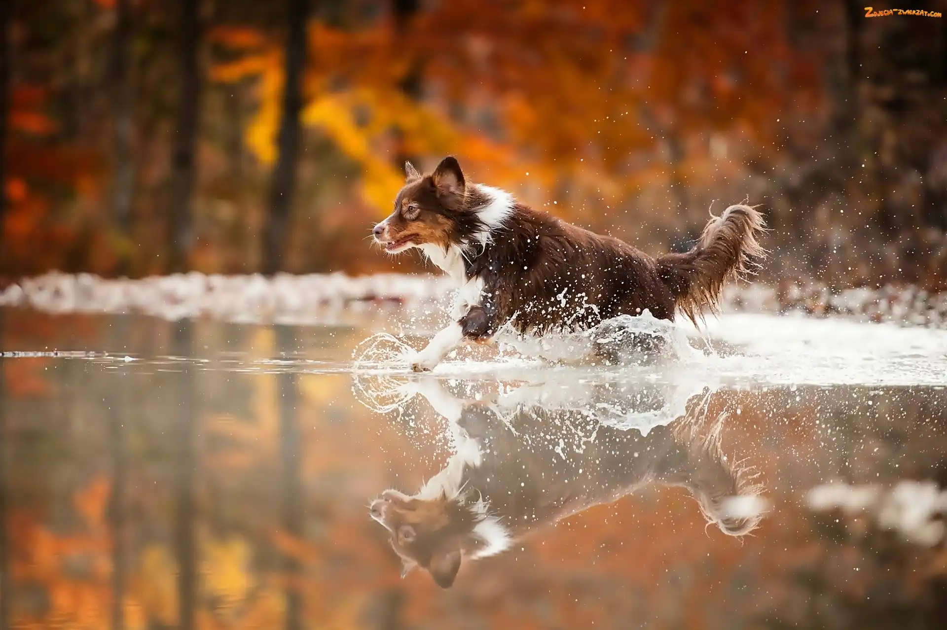 Odbicie, Rozbryzg, Pies, Biegnący, Woda