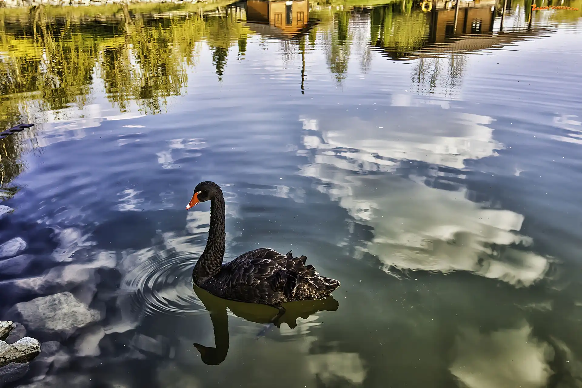 Odbicie, Domy, Łabędz, Czarny, Jezioro