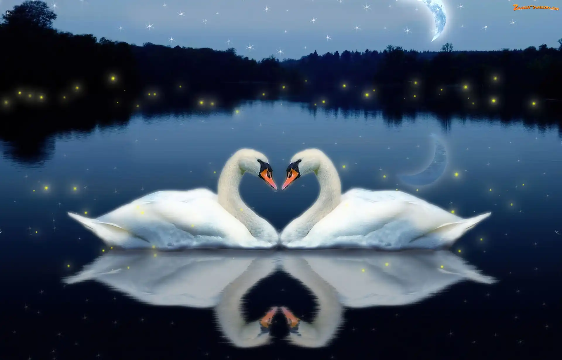 Odbicie, Jezioro, Zakochane, Dwa, Łabędzie