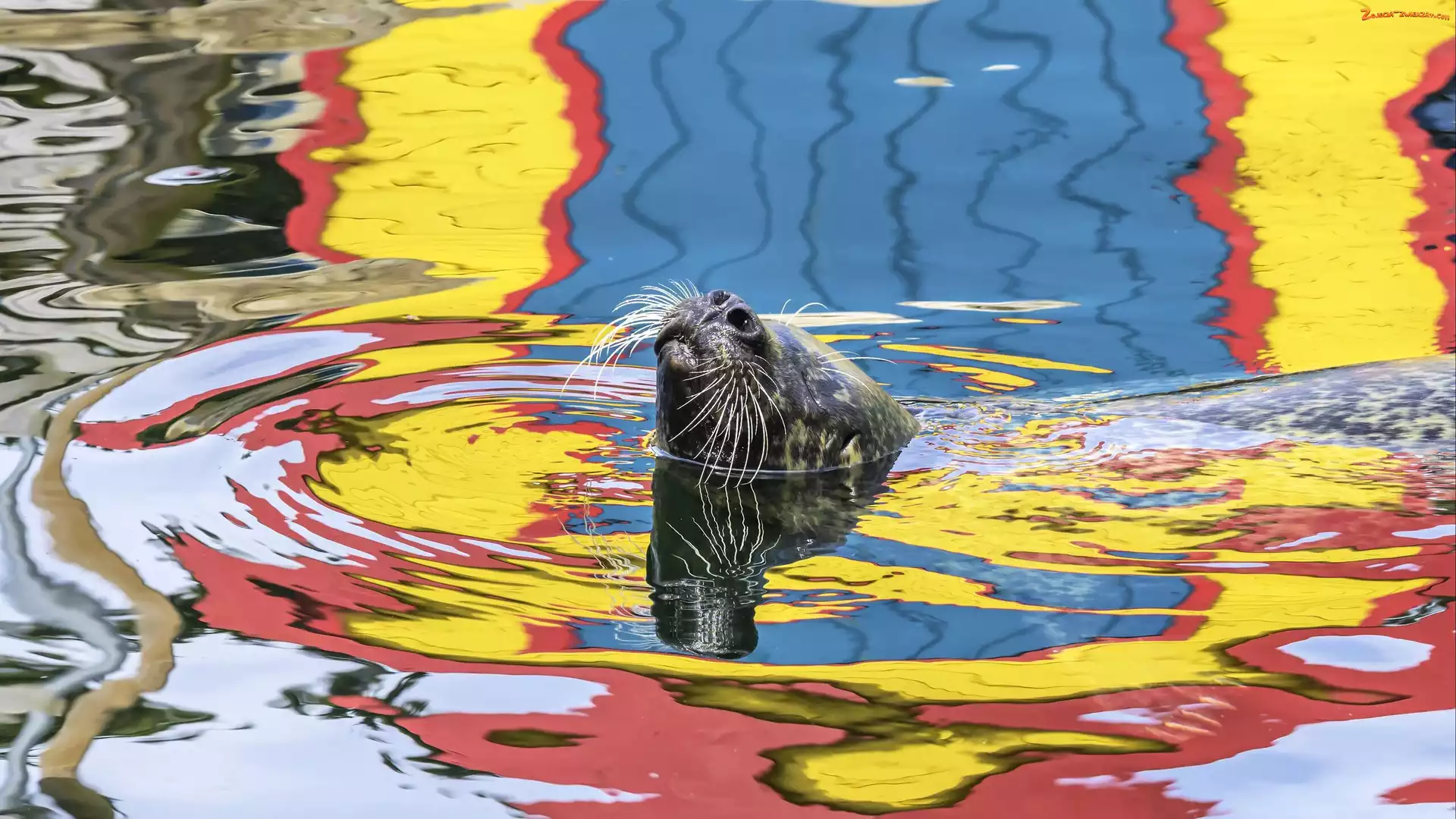 Zdjęcie: Foka, Głowa, Woda, Odbicie
